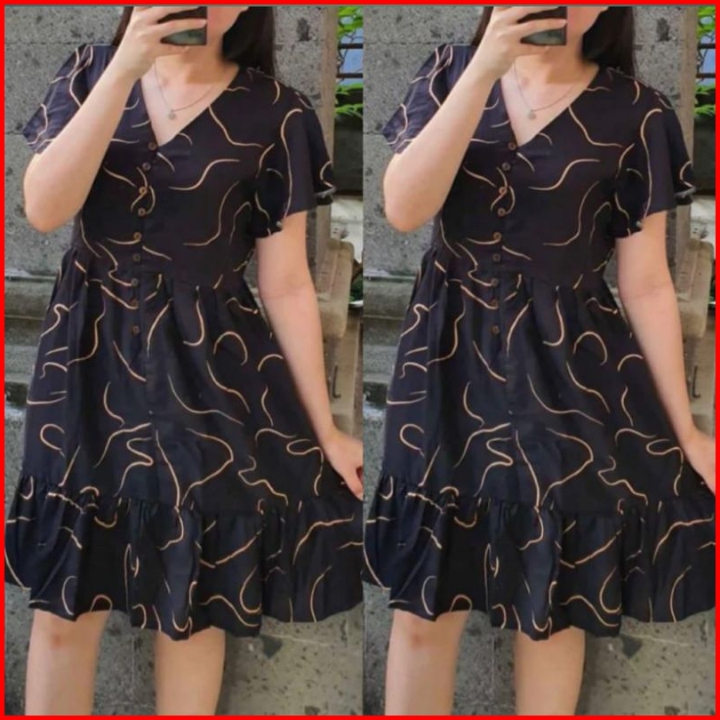 Daster Polo Press Body Bumil Busui Frendly Motif Salur Mini Selutut Dress Kancing Aktif Bagian Depan