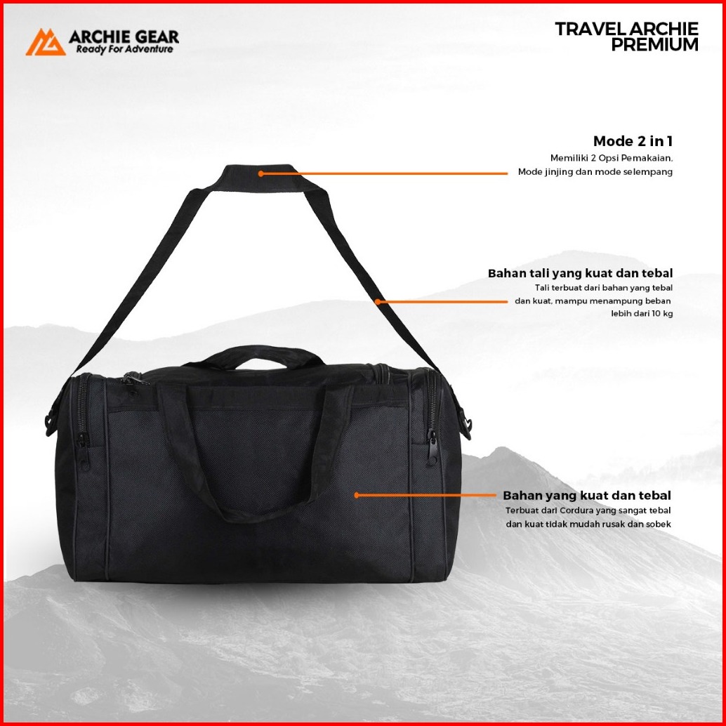 Archie Gear - Tas Travel Jinjing Selempang Duffle Bag 2 In 1 Traveling Hangoout Mudik Jalan Pulkam Hitam Bagus
