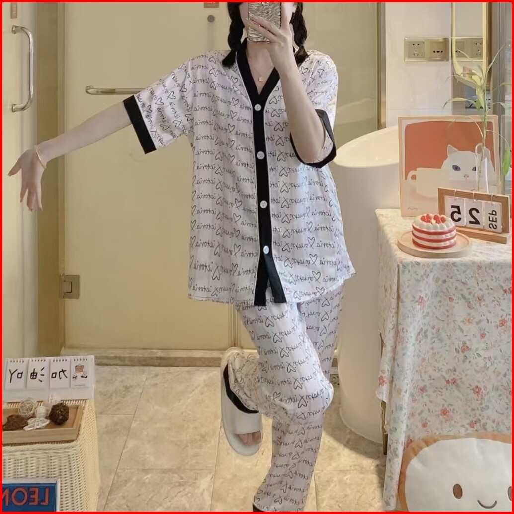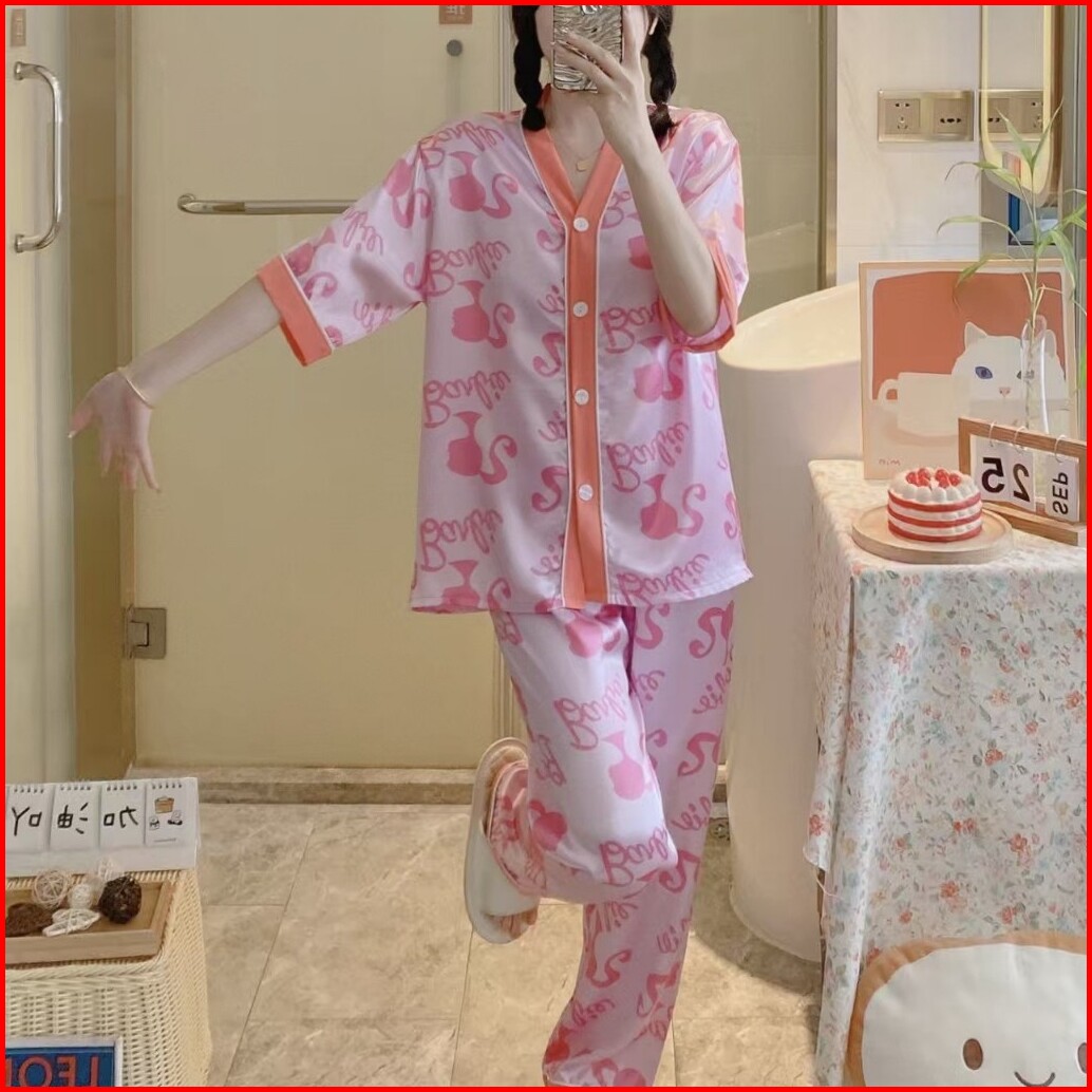 Set Dua Potong Pakaian Rumah Sutra Tipis Sutra Es Lengan Panjang