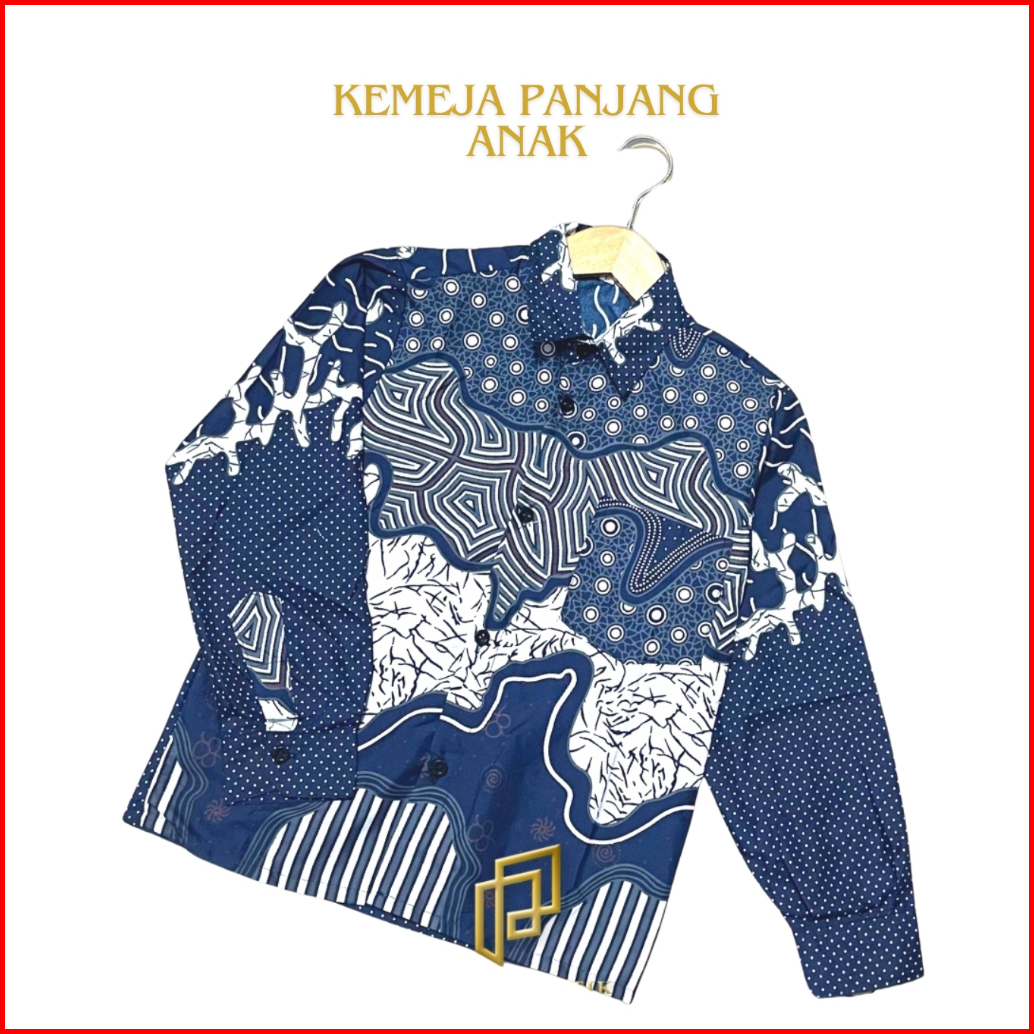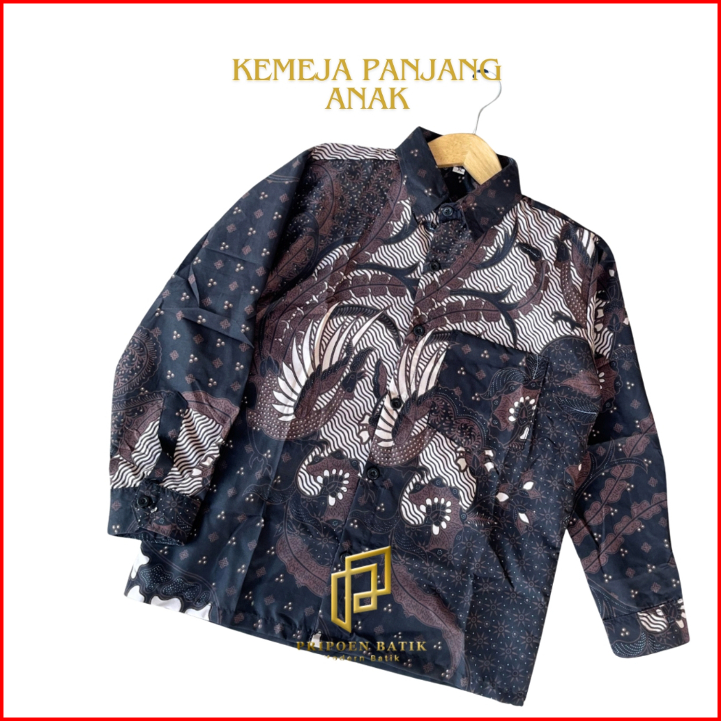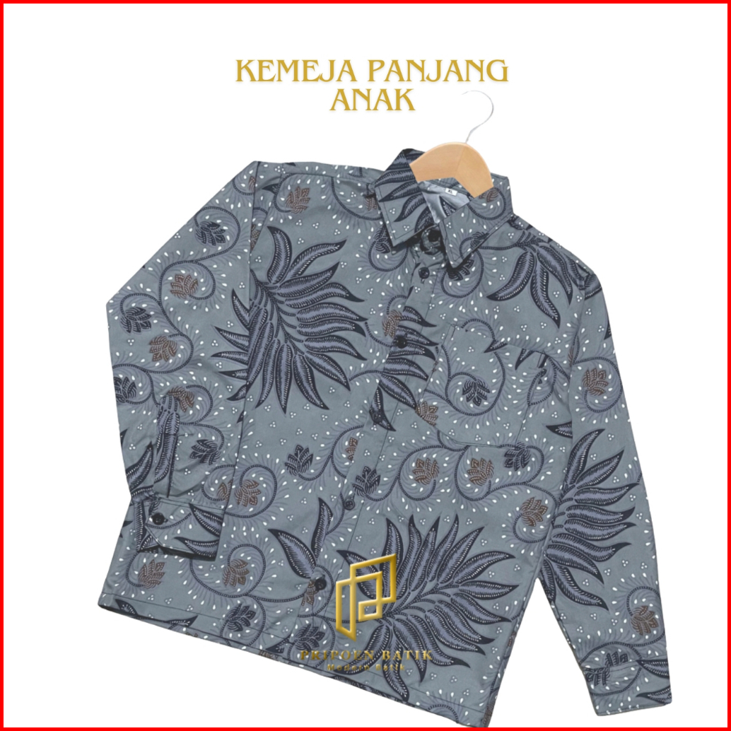 Pripoen Batik Kemeja Batik Anak Cowok Lengan Panjang 2-12 Tahun Abuabu