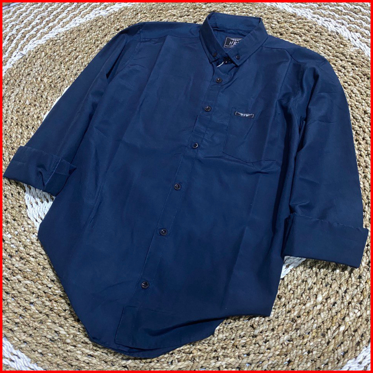 Kemeja Polos Navy Casual Pria Lengan Panjang Size M L Xl Xxl