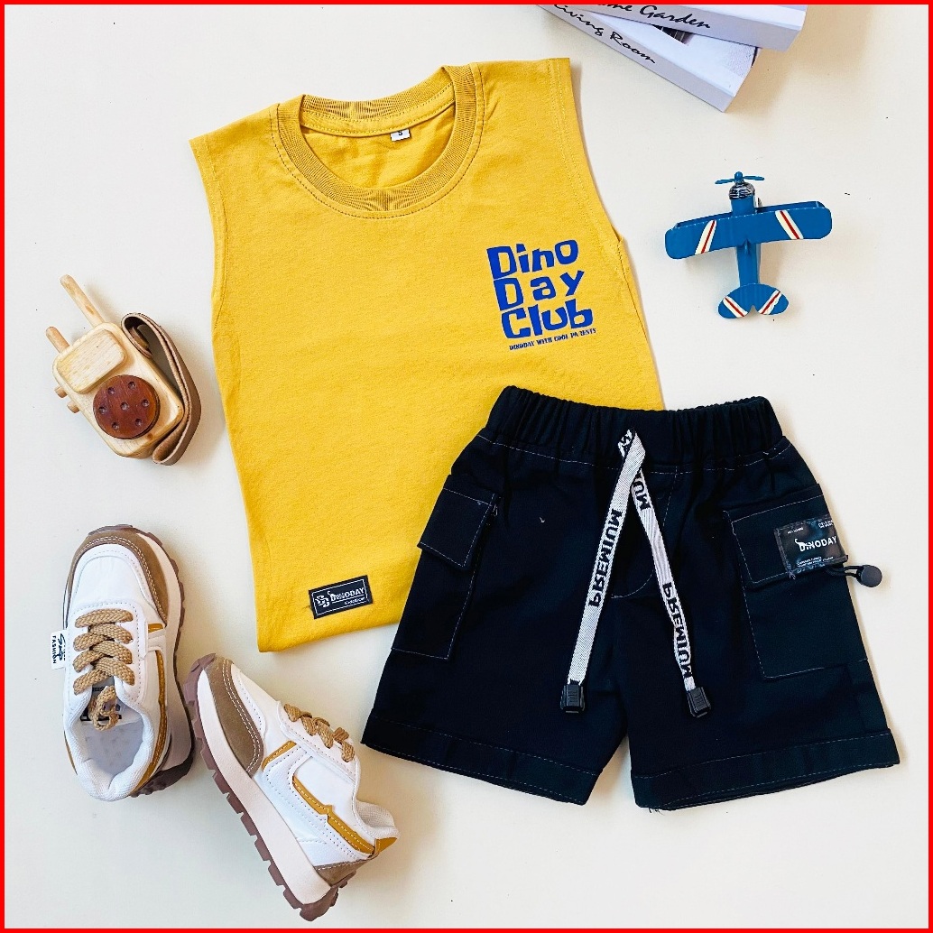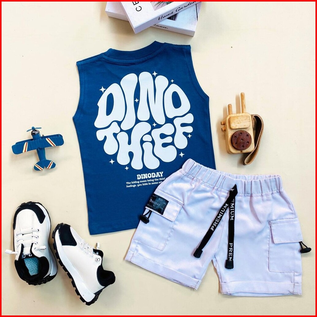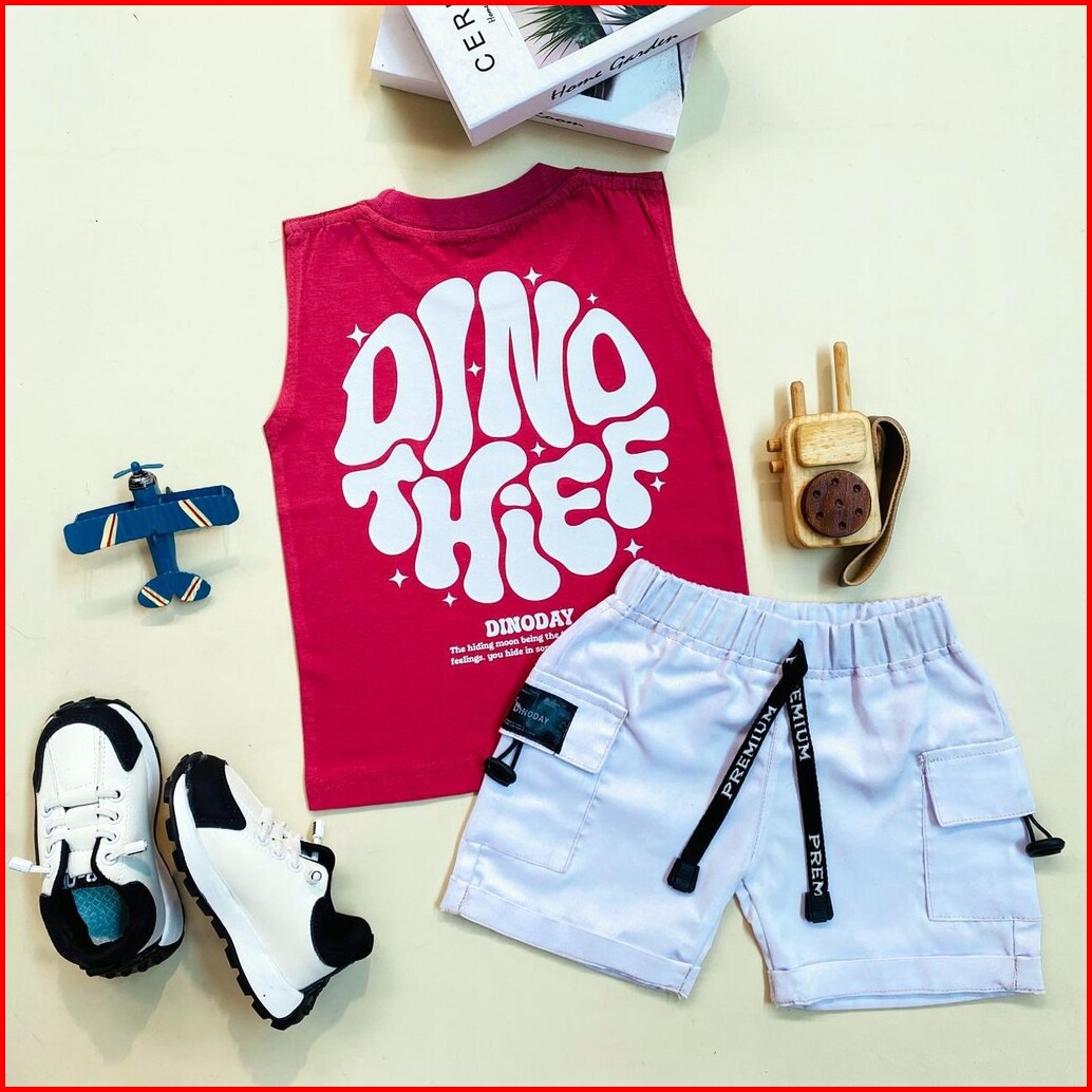 Estishop X Dinoday Stelan Baju Anak Laki Laki Kaos Kutung Singlet Celana Cargo Premium Usia 1-9 Tahun