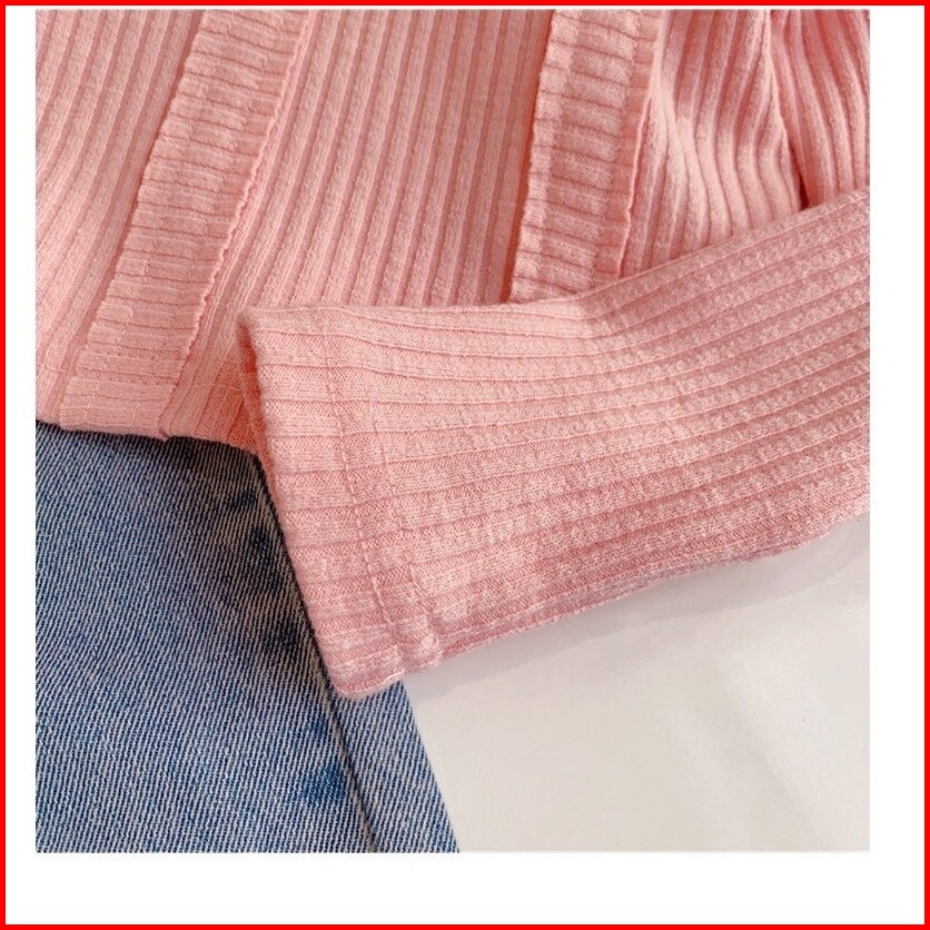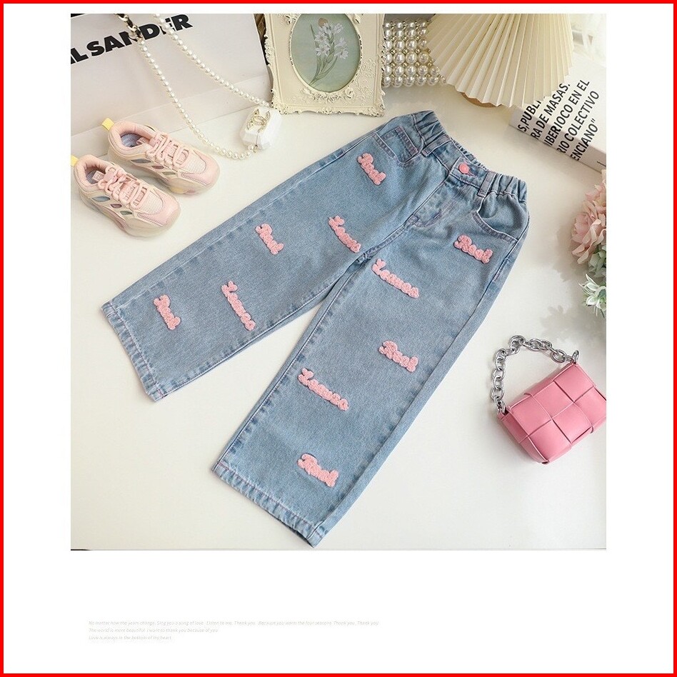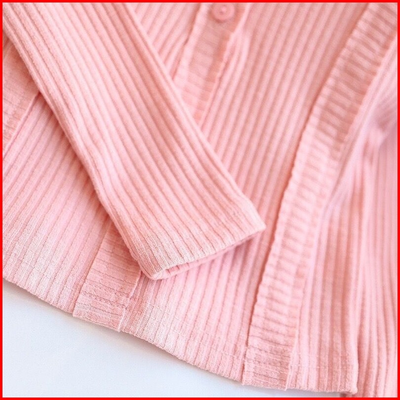 Chubbi 25 - Setelan Set Anak Korea Pink Rajut Kancing Celana Jeans Bordir Timbul