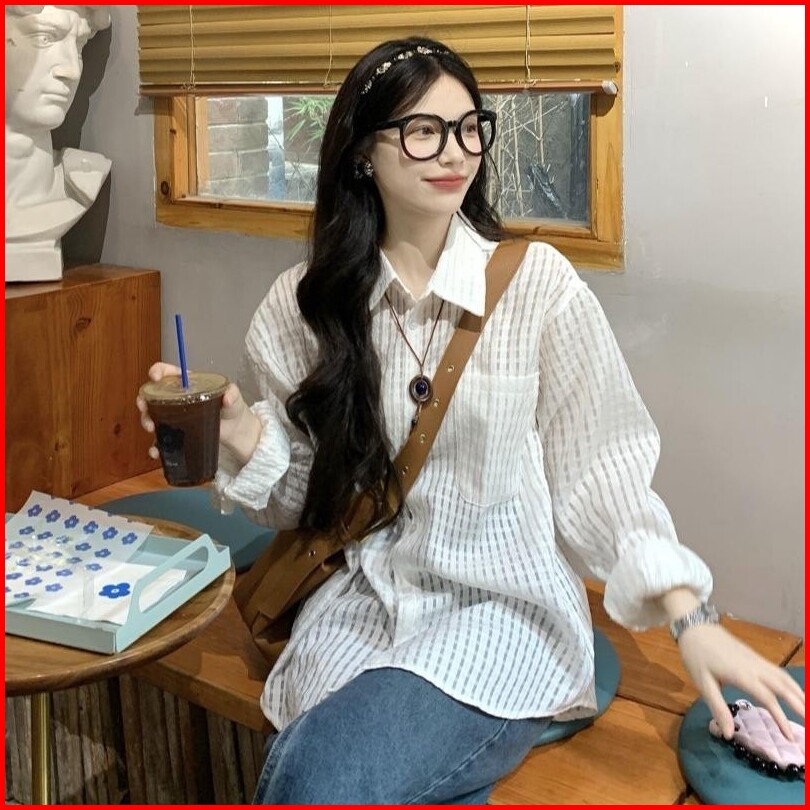 Kemeja Musim Panas Wanita Lengan Panjang Resleting Ganda Desain Polo Kasual Polos W256 Summer French White Shirt Double
