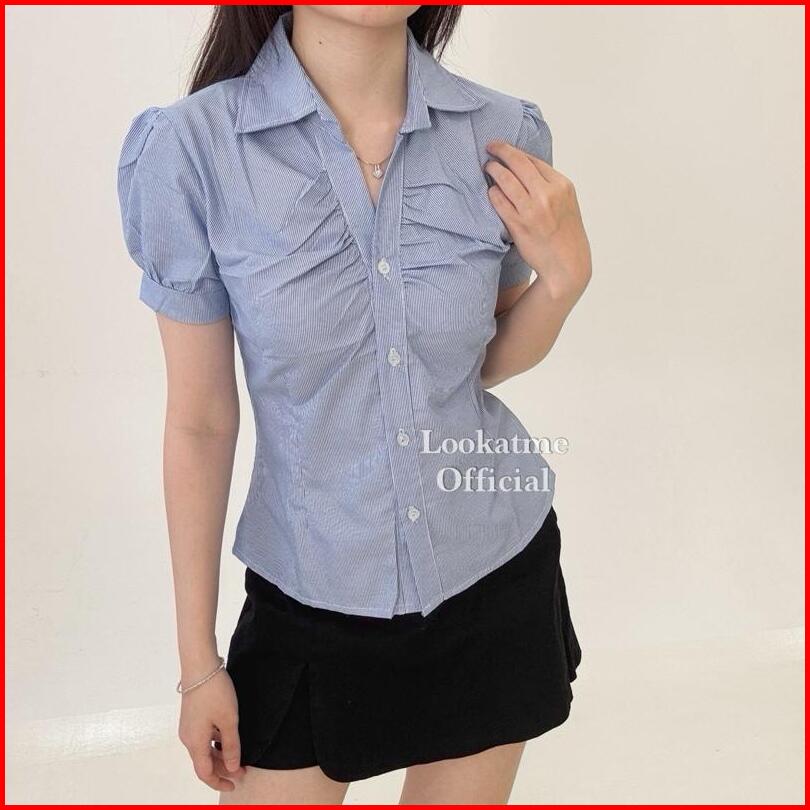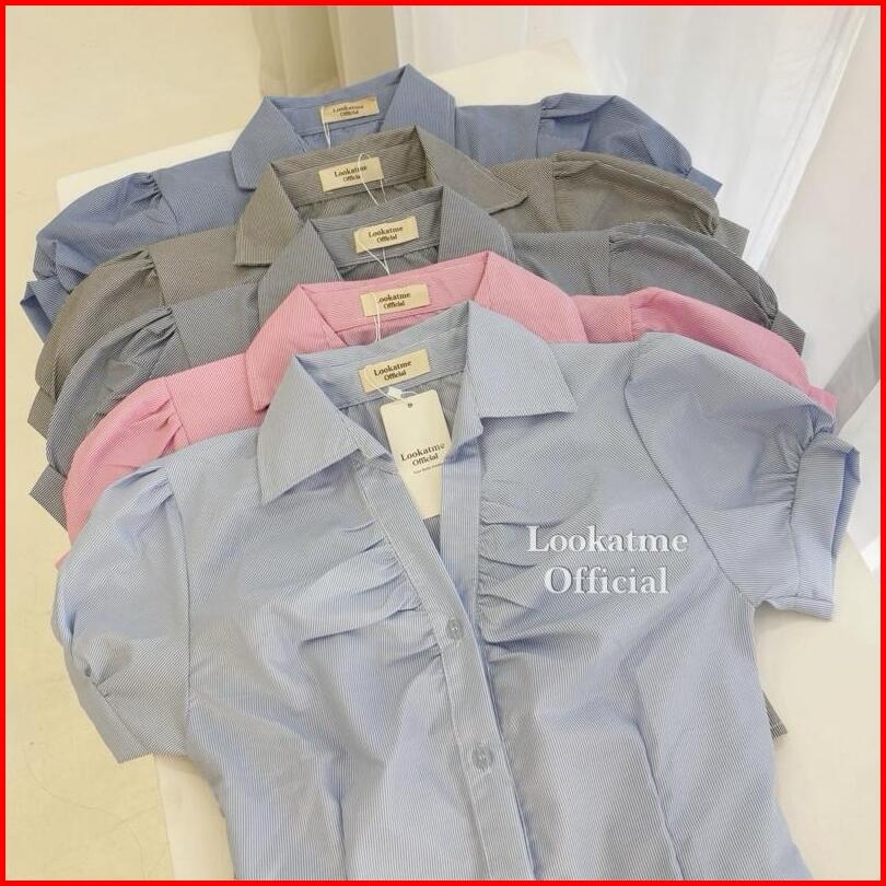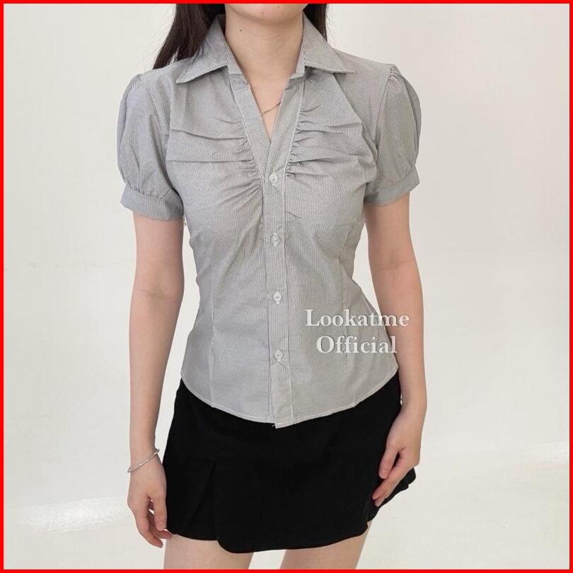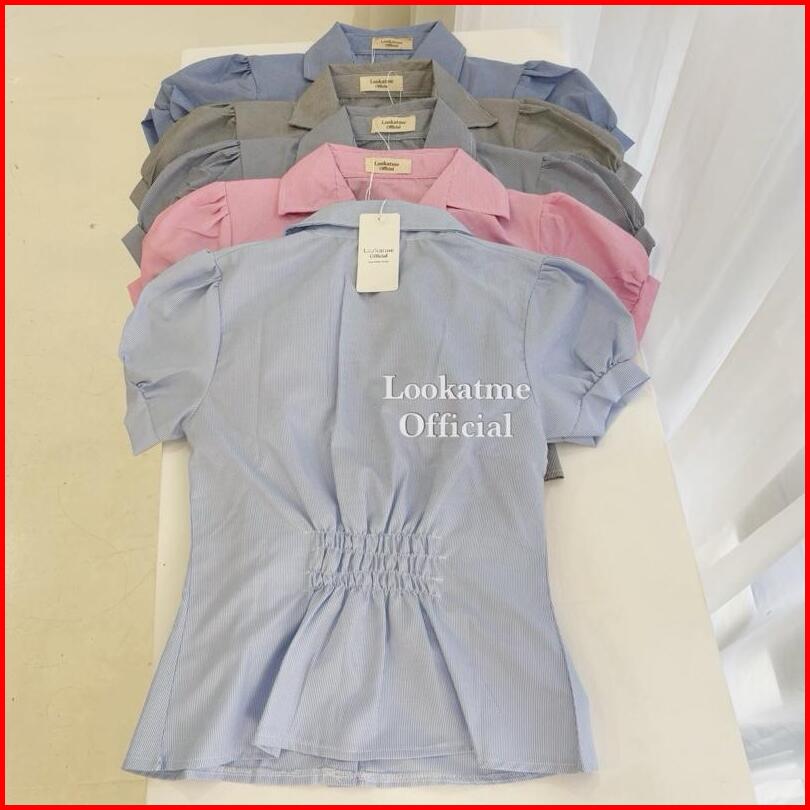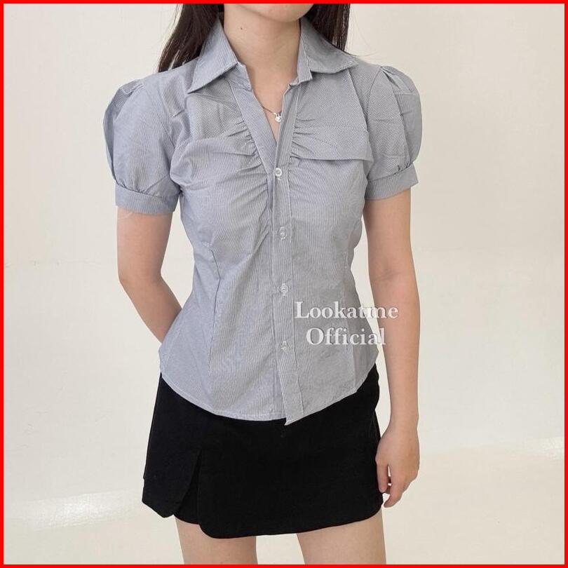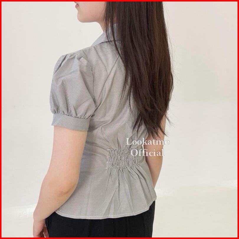 Aurel Shirt - Atasan Kemeja Stripe Fitted Shirt Wanita Atasan Kerja Blouse Stripe Casual Formal Korean Look Press Body