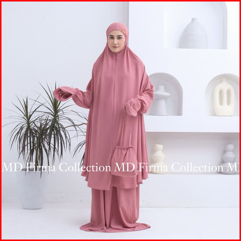 Md Nisa - Mukena Dewasa Jumbo Crinkle Airflow Khadijah 2in1 Setelan Berlengan Atas Bawah Penutup Dagu Syar I Malaysia
