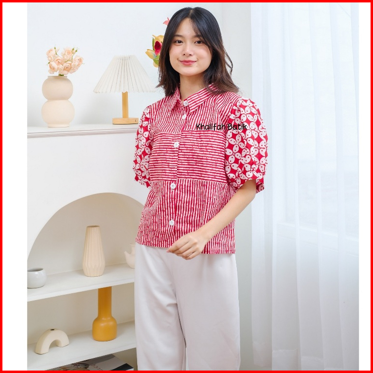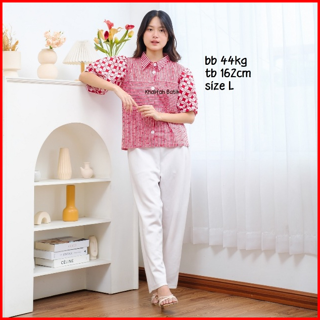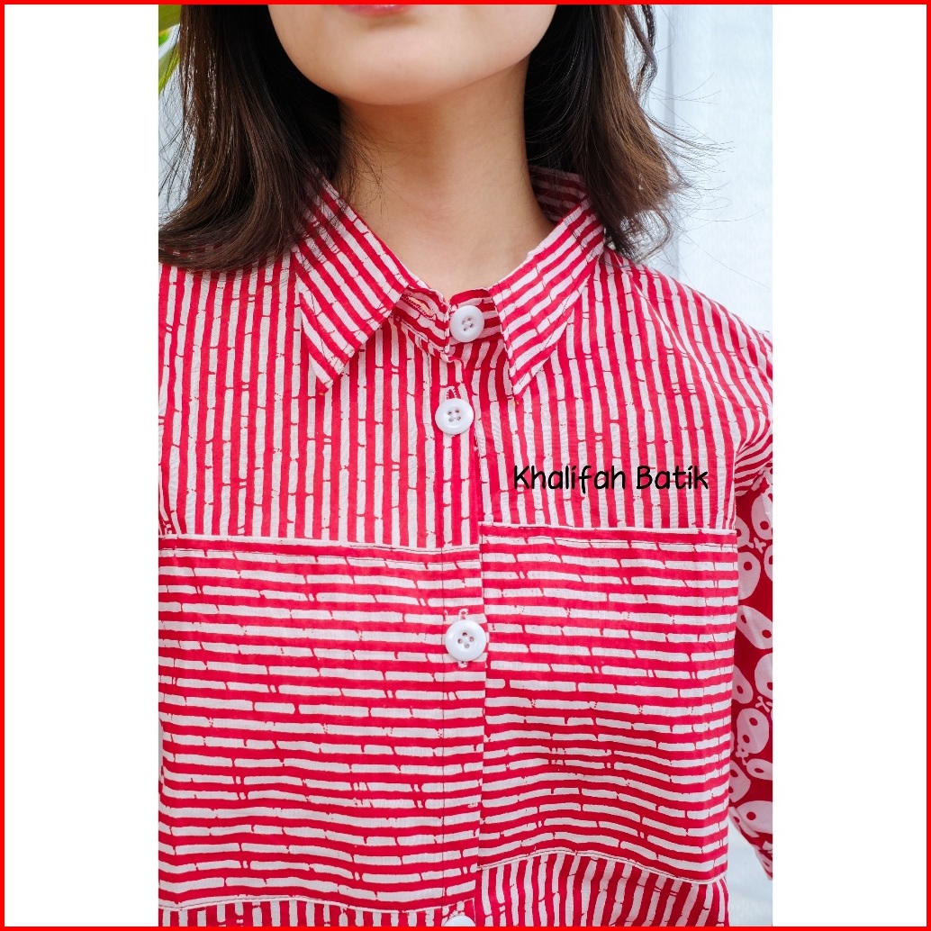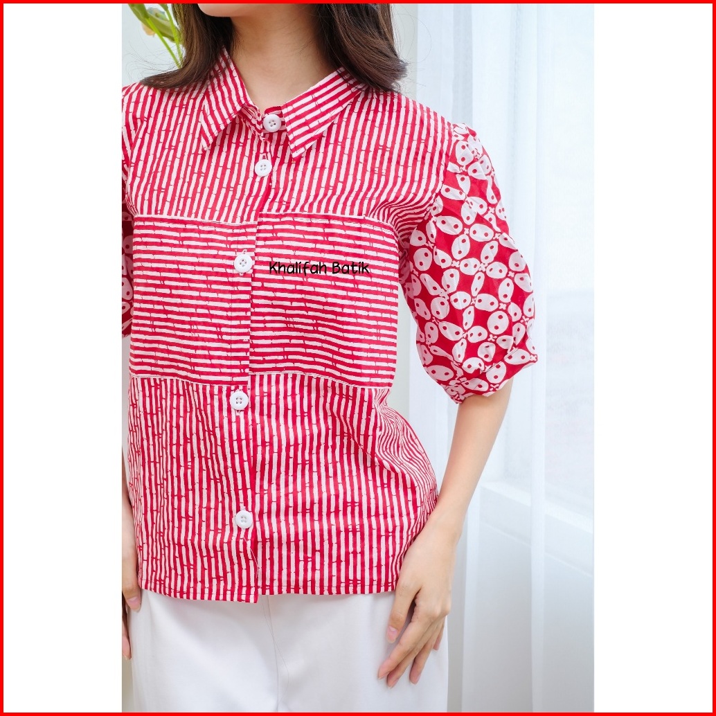 Kemeja Garis Garis Wanita Kombinasi Batik