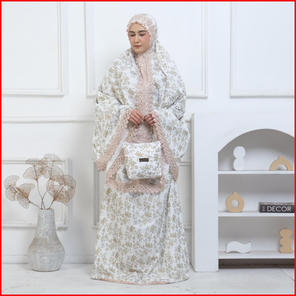 Arbifa Bilqis Mukena Dewasa 2in1 Katun Foil Jumbo Renda Ziper Mewah