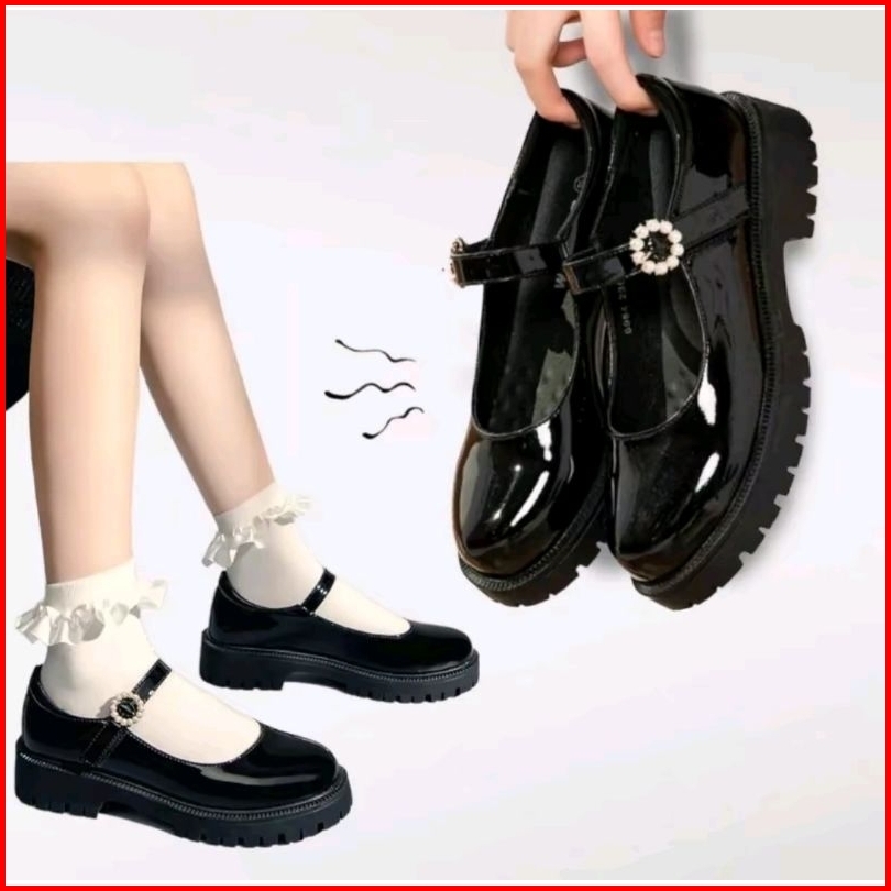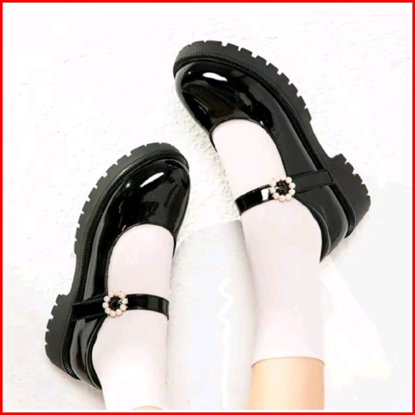 Sepatu Docmart Hitam Sekolah Remaja Perempuan Hak Datar Import Premium Gesper 09 Terbaru Fashion Korea Flatshoes Natasa