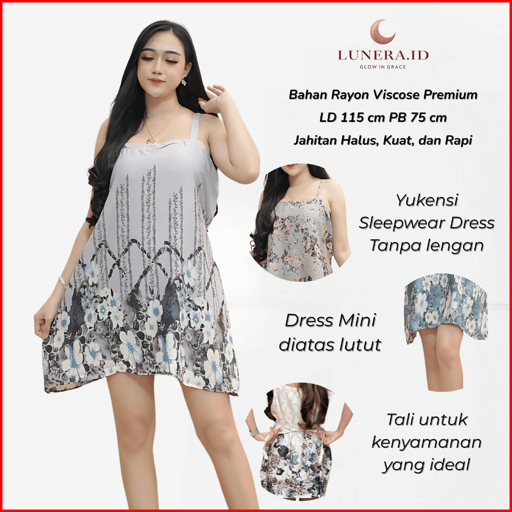 Girls Sleepwear Dress Pendek Wanita Casual Motif Daster Yukensi Jumbo Tanpa Lengan Lingerie Baju Dinas Wanita Mini Dress