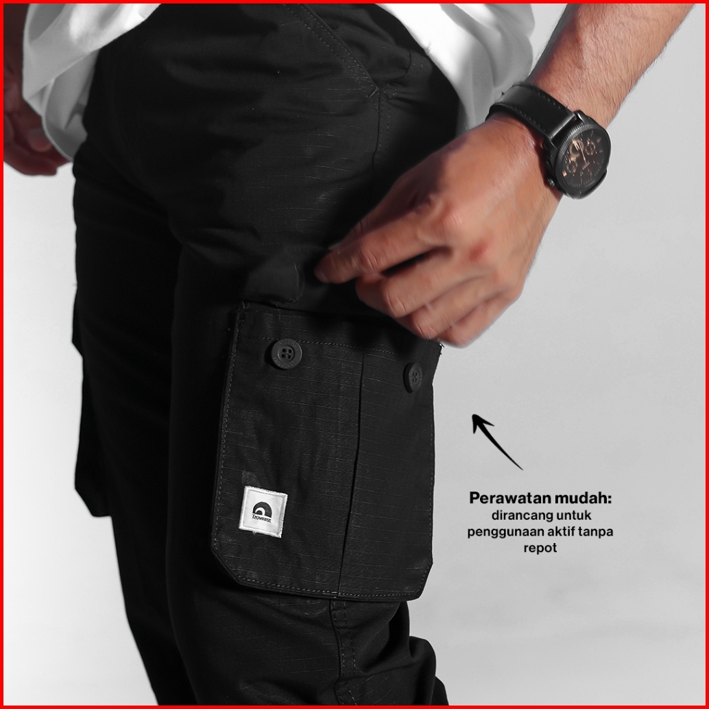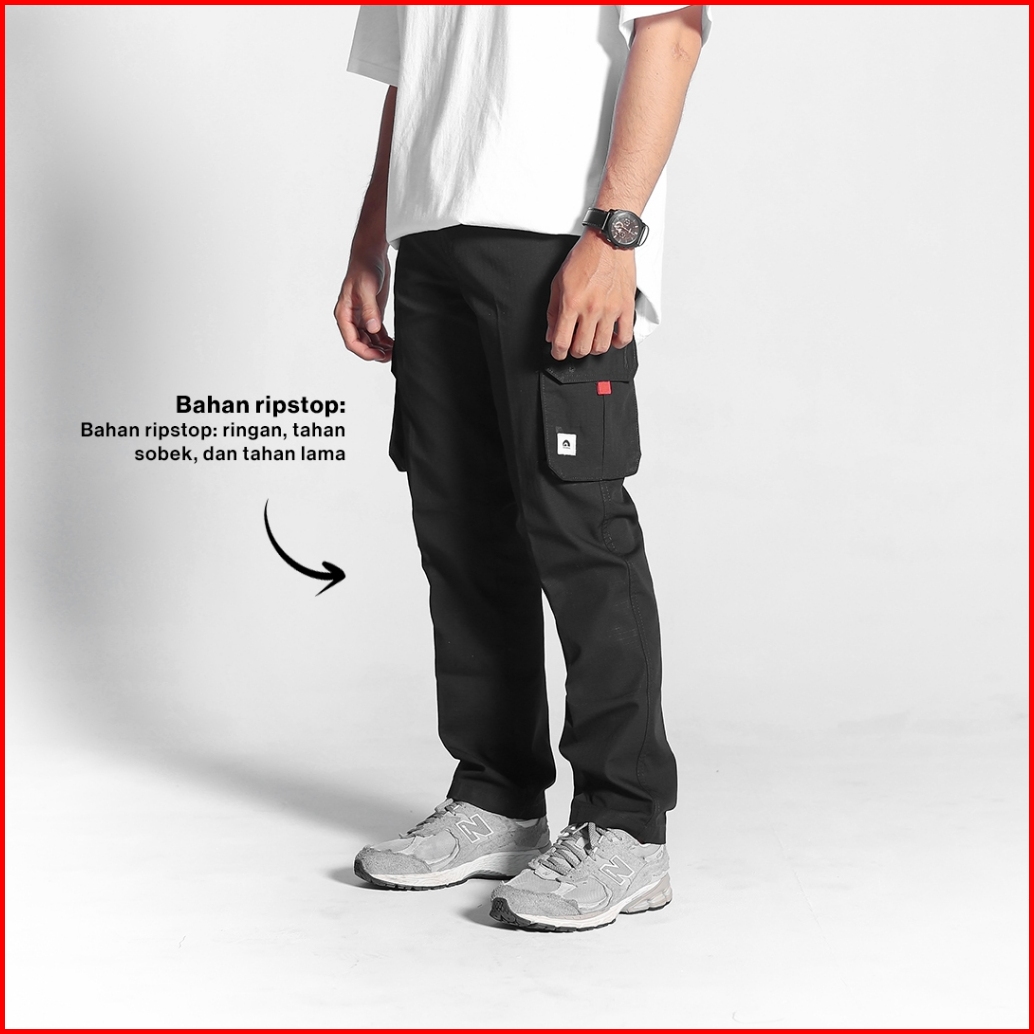 Troveast Celana Pdl Cargo Panjang Pria Regular Fit Ripstop Black