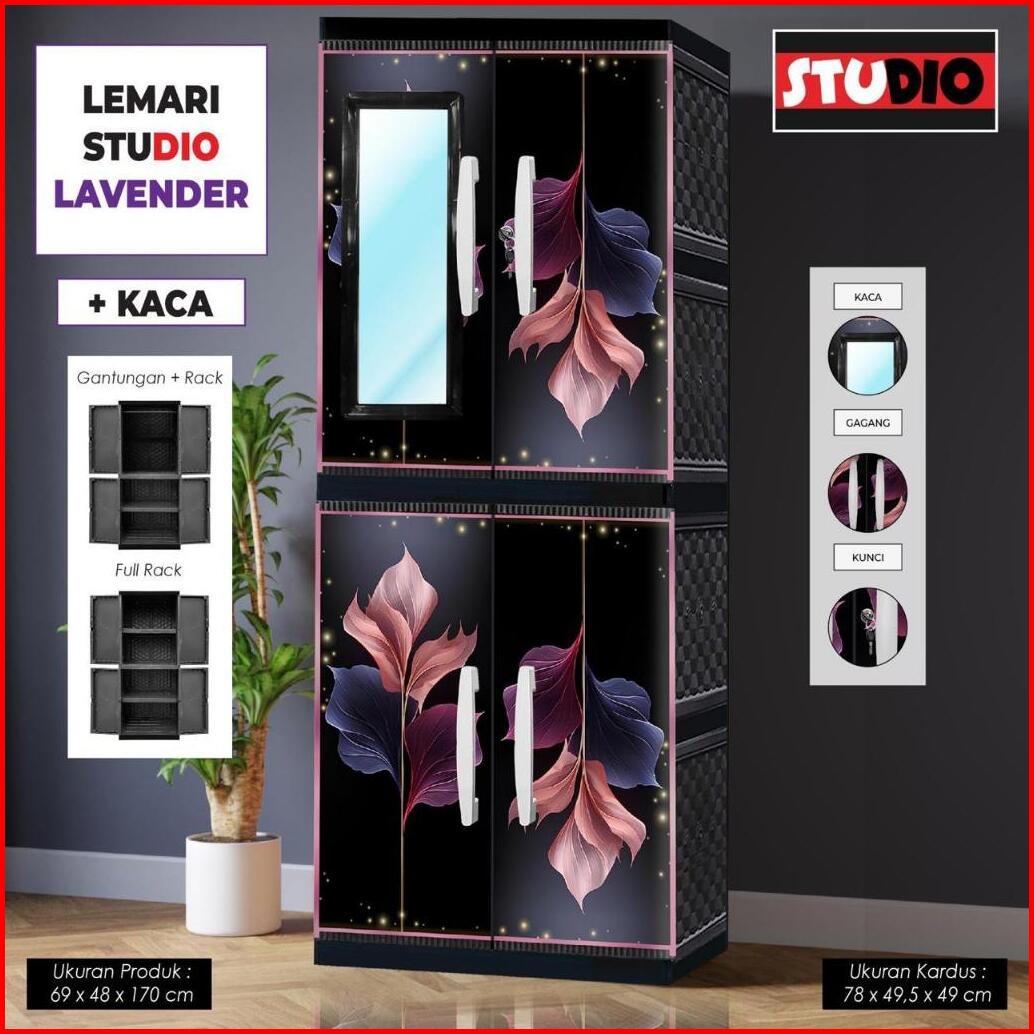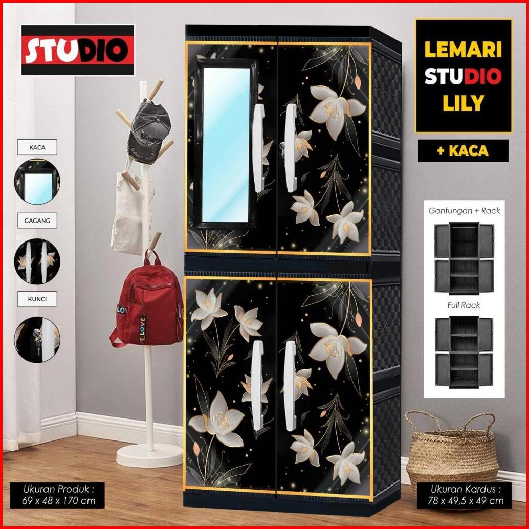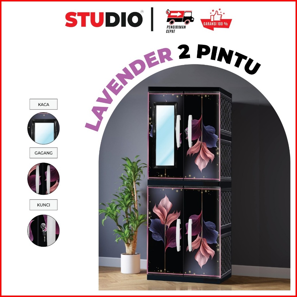Studio - Lemari Pakaian Plastik 2 Pintu Jumbo Motif Bunga Printing Vip Gantung Kaca