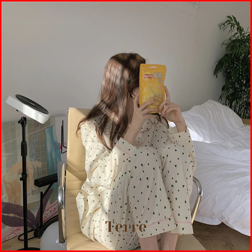 Jang Mi Sleepwear Piyama Wanita Lengan Panjang Celana Panjang Baju Tidur Wanita Sleepwear Pakaian Tidur Wanita Baju Tidu