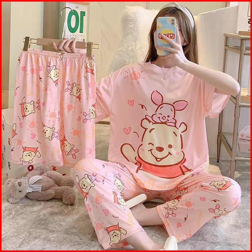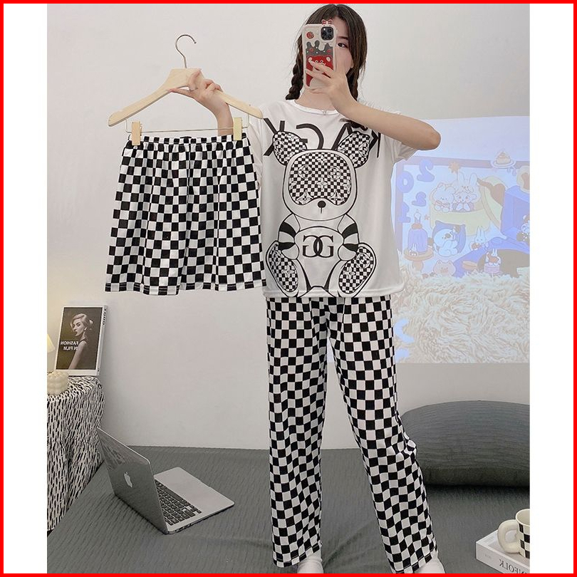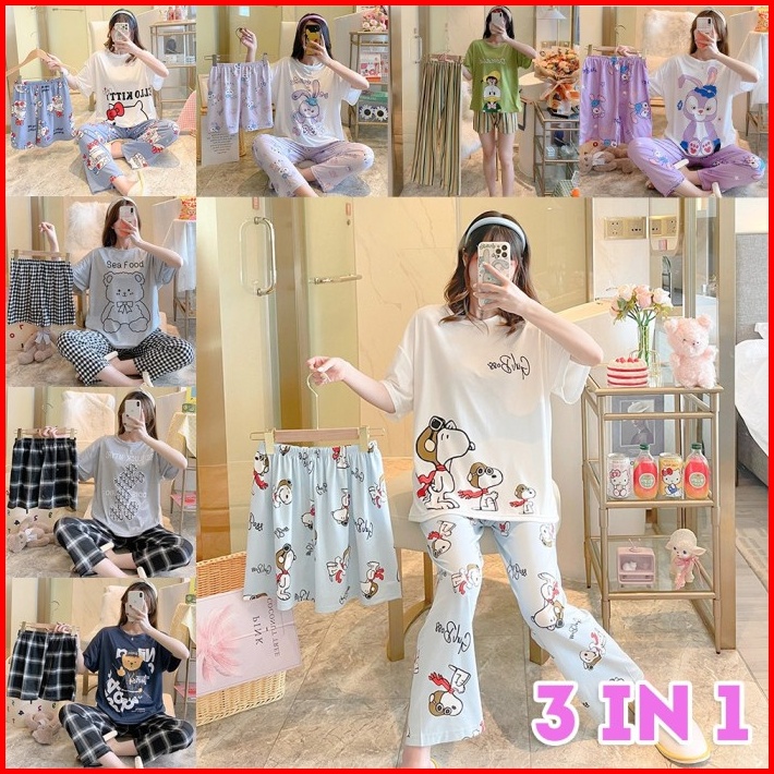 Cjsw-3in1 Tino Tino Piyama 3in1 Piyama Lengan Pendek Celana Panjang Pendek