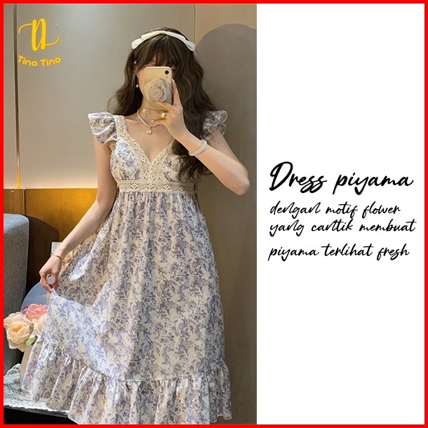 Tino-tino Dq996 Piiyama Set Tanktop Vintage Ruffle With Lace Dengan Bantalan Dada Motif Flower