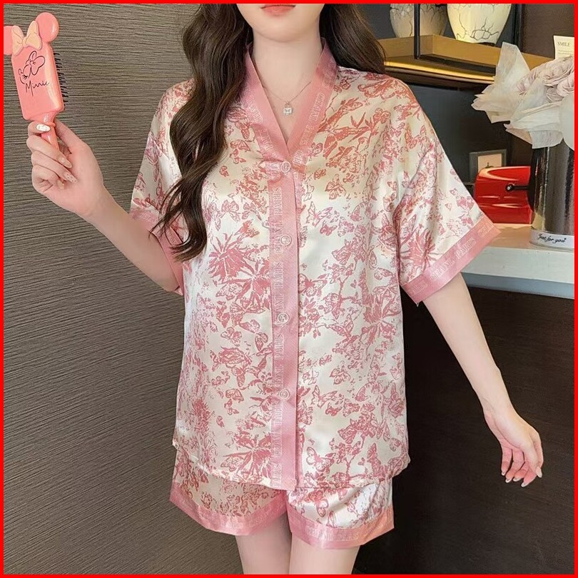 Celana Pendek Lengan Pendek Piyama Sutra Es Pakaian Rumah Manis Wanita Dua Potong Set