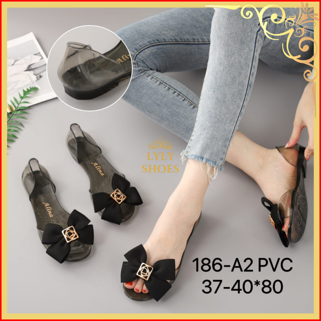 Sandal Flat Jelly Wedges Wanita Slipper Transparant Motif Pita 186-a2
