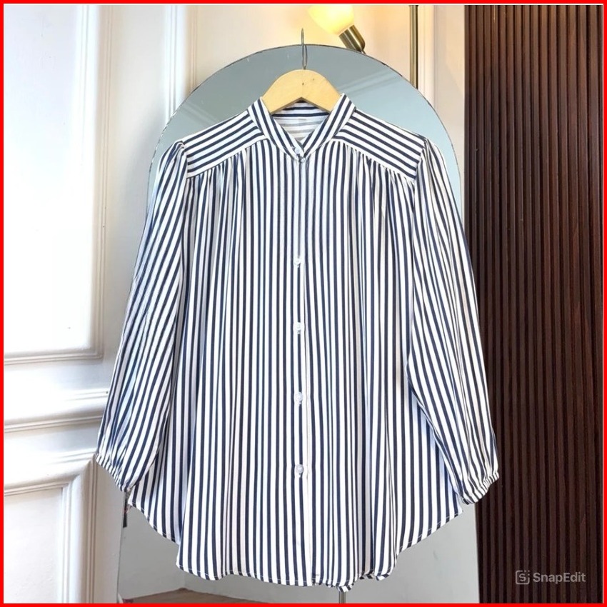 Azura Kemeja Salur Wanita Rayon Premium Atasan Korean Look Busui Frendly Terbaru