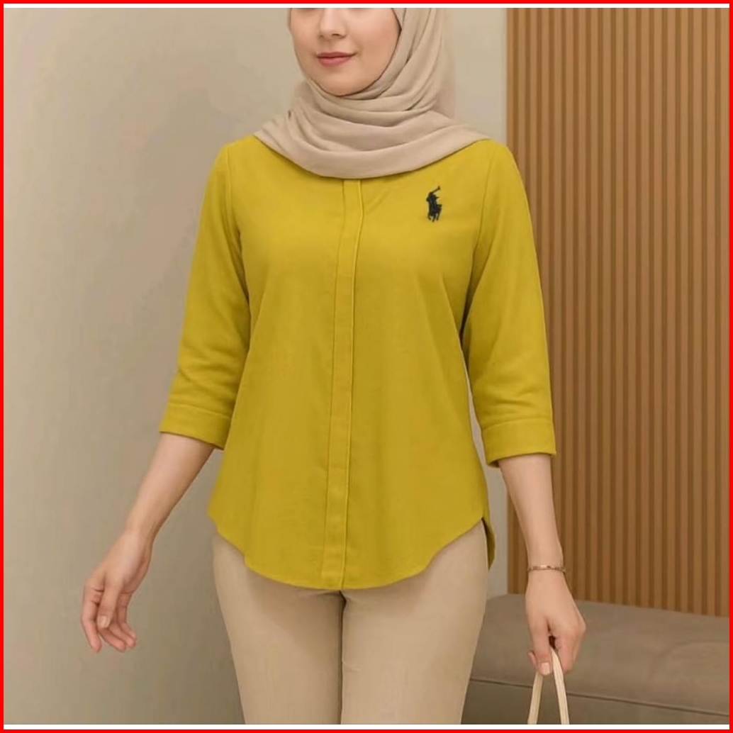 Kemeja Bordir Logo Atasan Wanita Rayon Twill Lengan 7 8 Terbaru -kemeja Rayon Twill Terbaru - Kemeja Blouse Wanita Terba