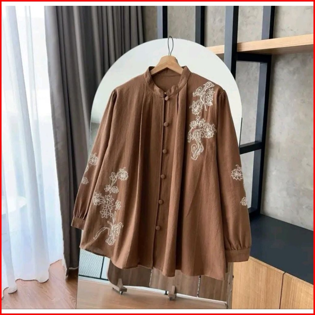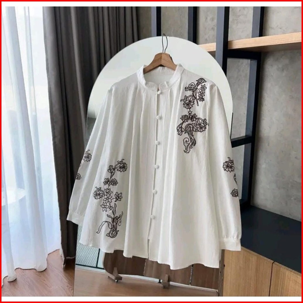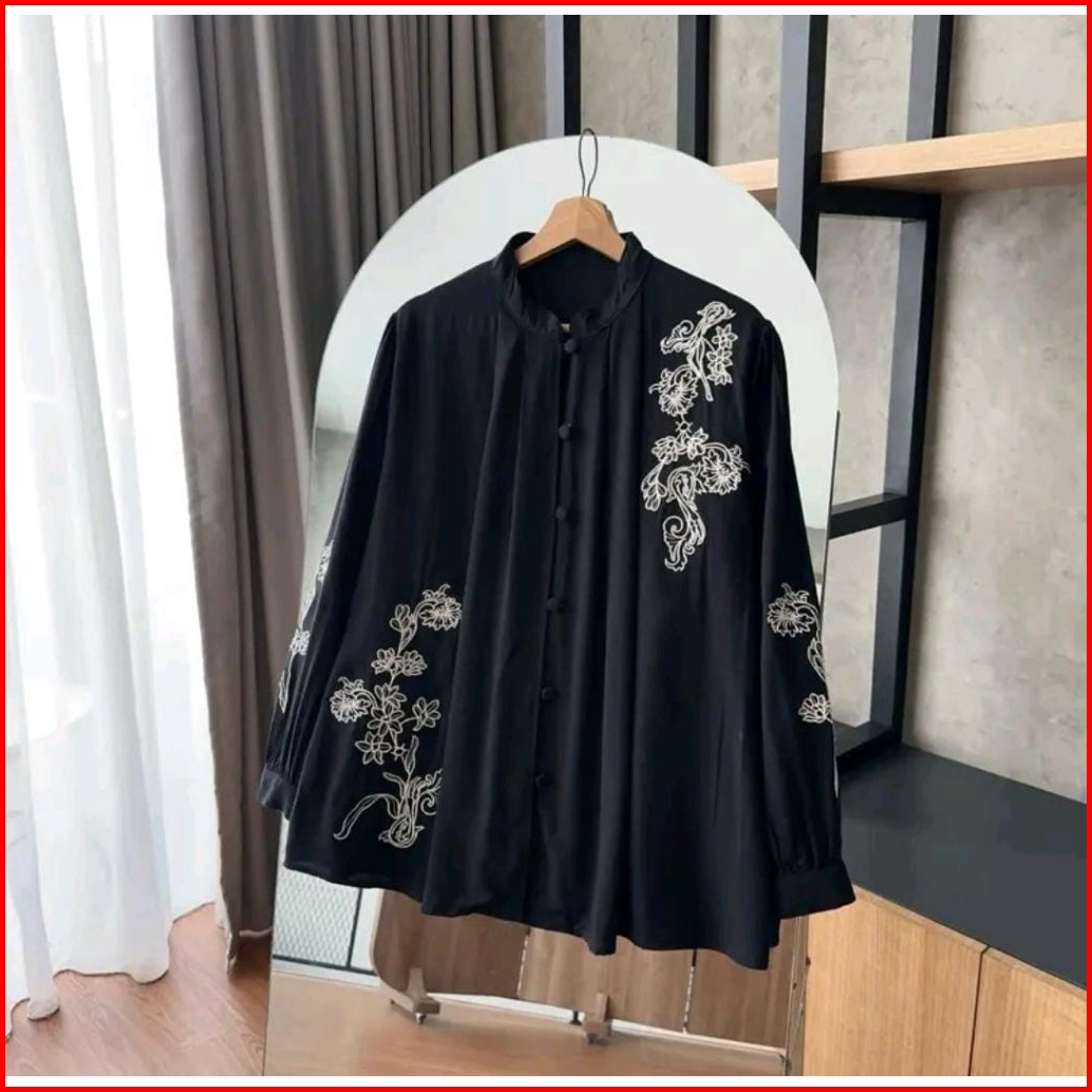 Euis Blouse Bordir Rayon Twill Bunga-bunga