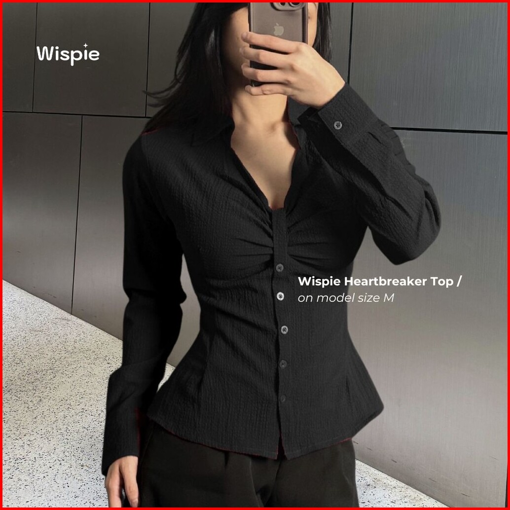 Wispie Heartbreaker Top Atasan Wanita Fitted Slim Fit Tekstur Maroon Navy Pink