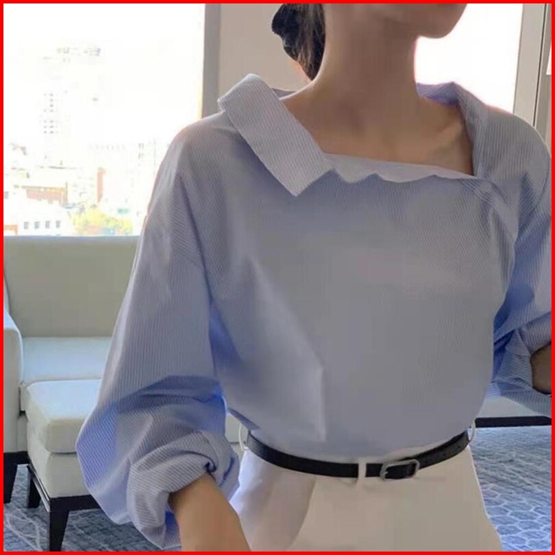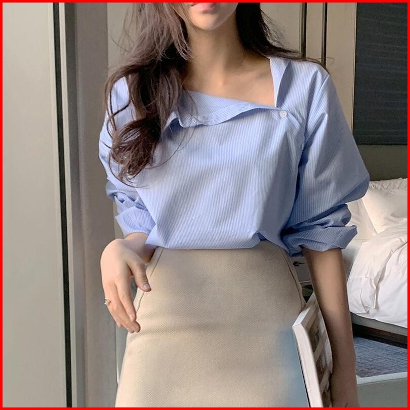 Feminafashion W286 Blus Wanita Lengan Panjang Kancing V-neck Crop Top Kasual Fashion Kemeja Profesional