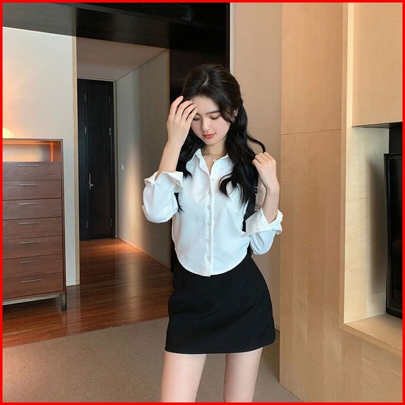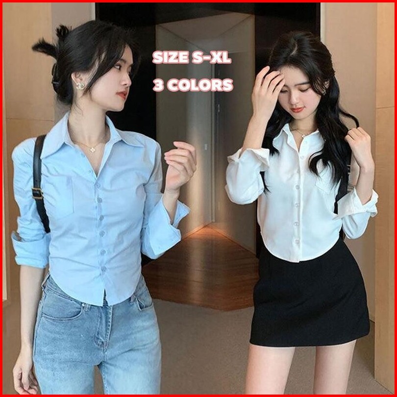 Kemeja Crop Top Korean Style Kemeja Wanita Lengan Panjang Atasan Slim Fit W314 Polo Crop Tops Long Sleeves Blouses For W