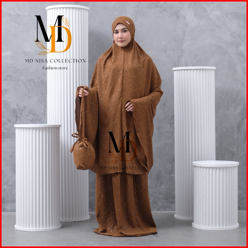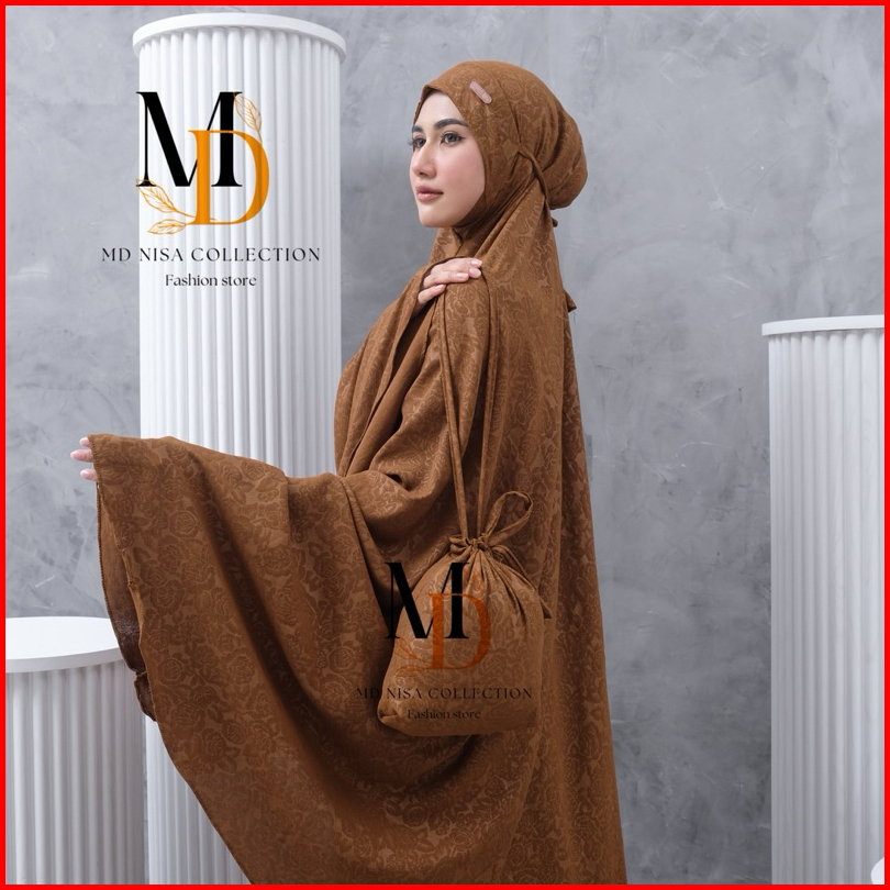 Md Nisa - Mukena Serina Dewasa Embos Cringkla Airflow Menutup Dagu Motif Bunga Mewah Polos Lilit Atasan Bawah