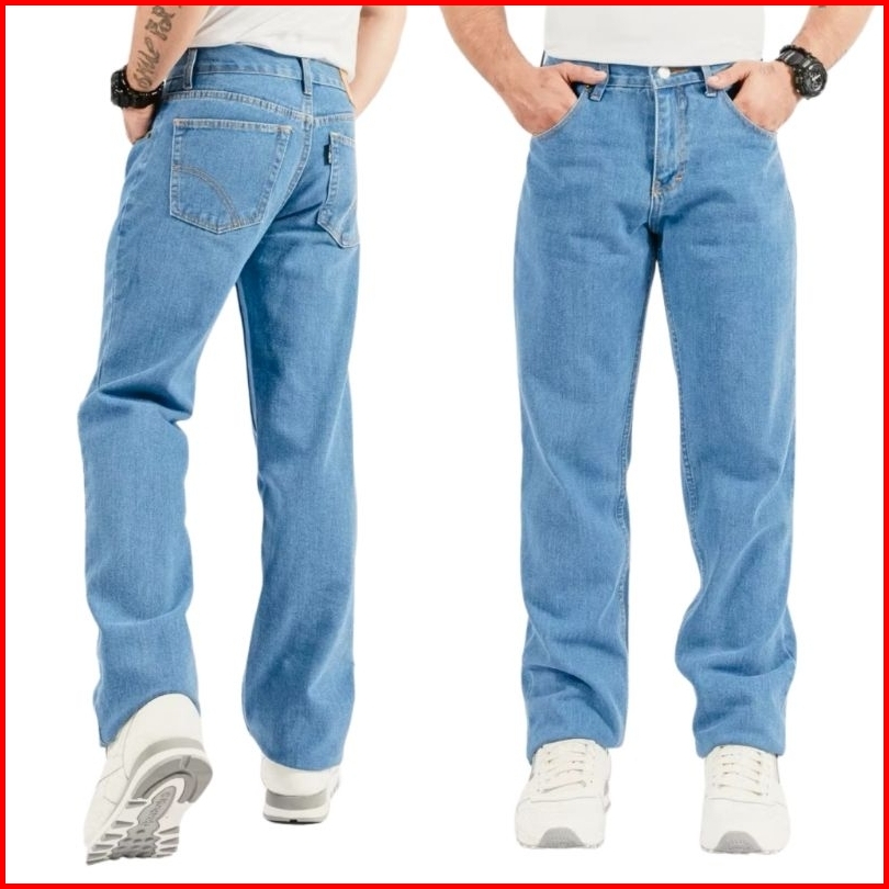 Celana Jeans Pria Standar Reguler Fit Bahan Denim Warna Biru Muda