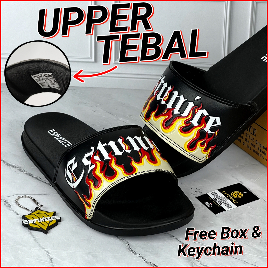 Estunice Sandal Slop Pria Slip On Slide - Fire Putih