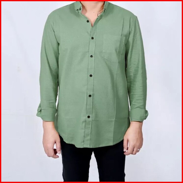 Kemeja Polos Casual Pria Lengan Panjang Sage Green Hitam Denim Burgundy Size M L Xl Xxl 3xl 4xl 5xl