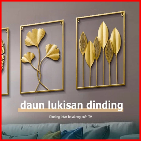 Wall Decor Daun Leaf 40 60cm Aesthetic Frame Metal Nordic Sofa Latar Modern Belakang Hiasa
