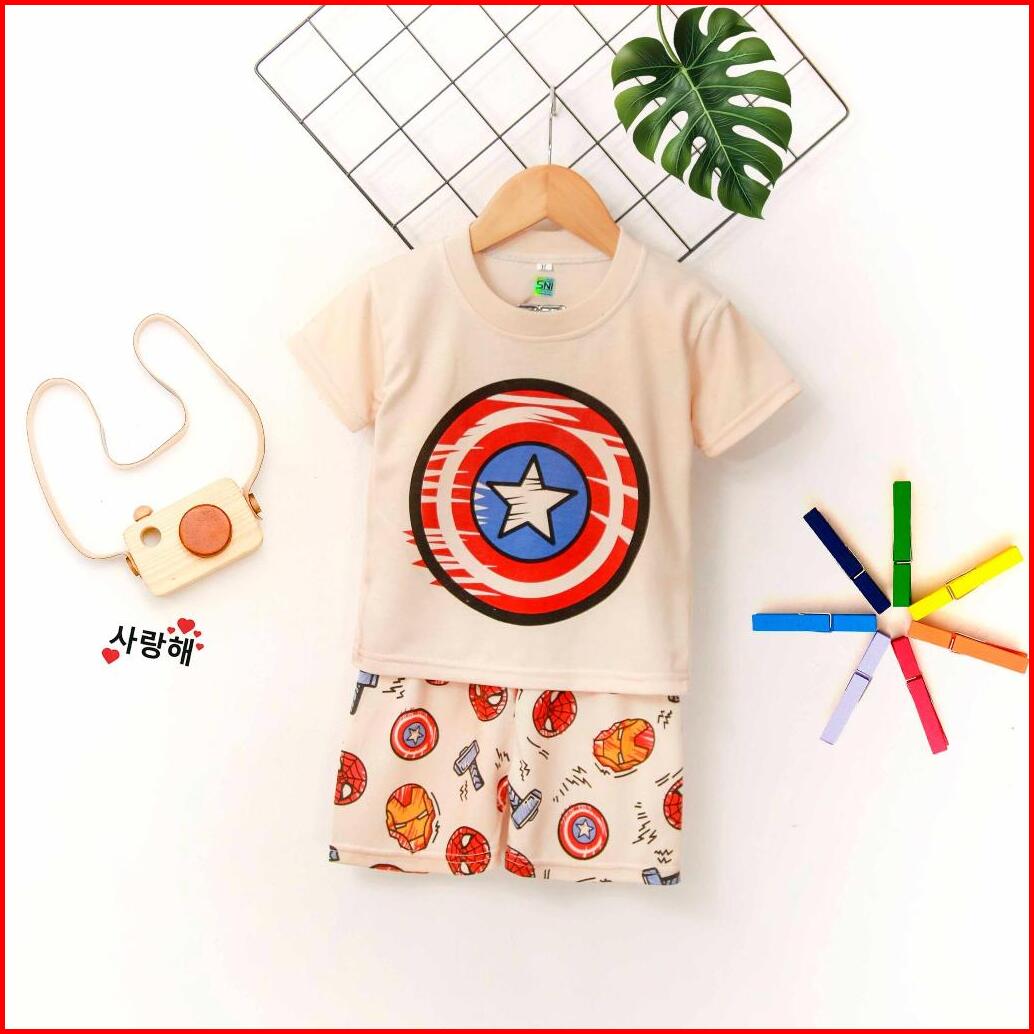 Foya Kids - Setelan Baju Premium Anak Motif Superhero Usia 0 - 6 Thn Setelan Karakter Anak Lucu Setelan Murah Anak Celan