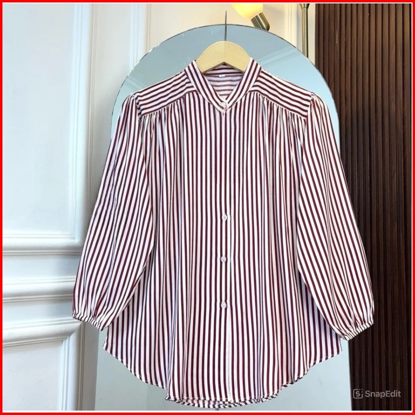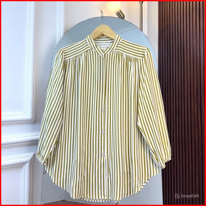 Azura Stripe Shirt Wanita Kemeja Salur Busui Frendly Daily Office