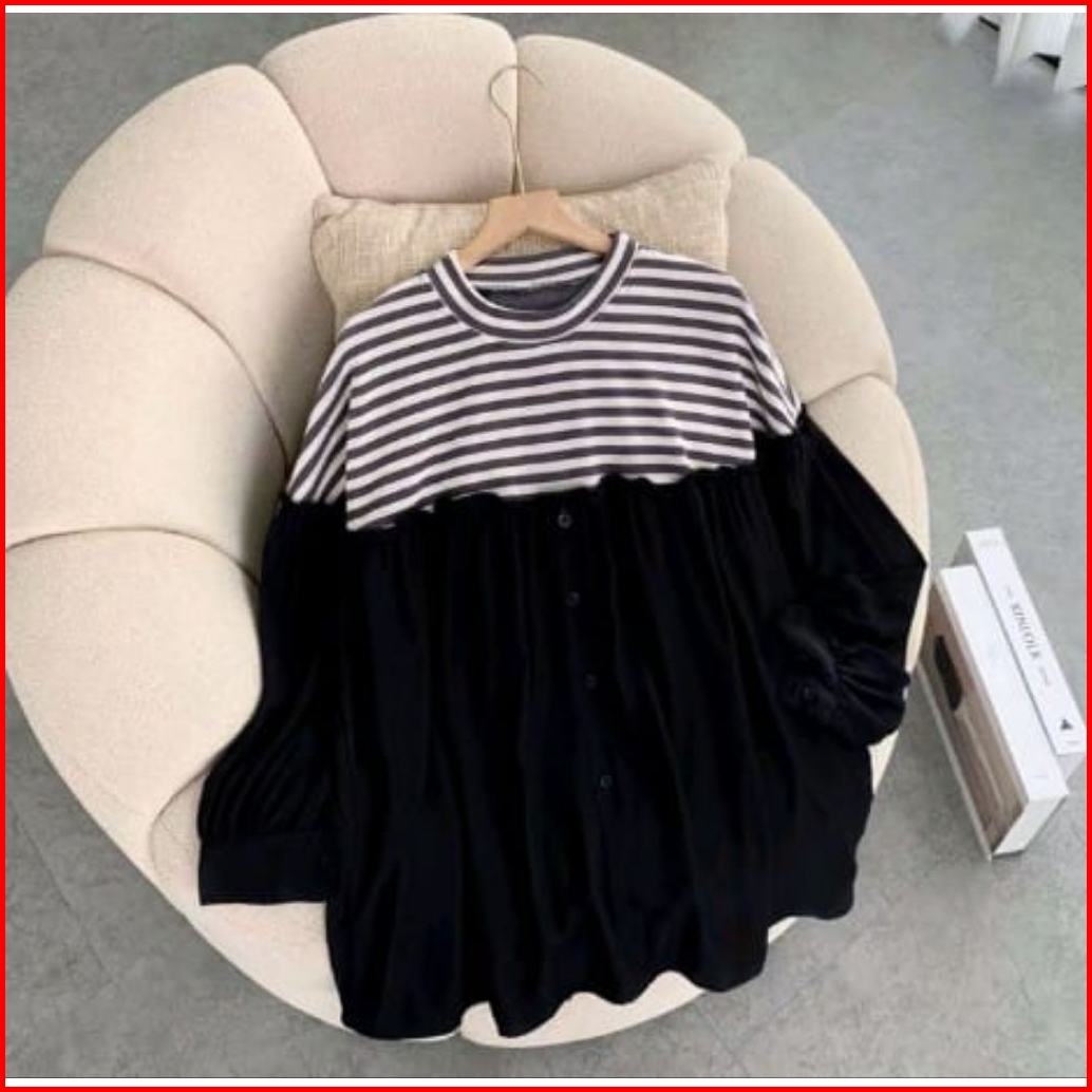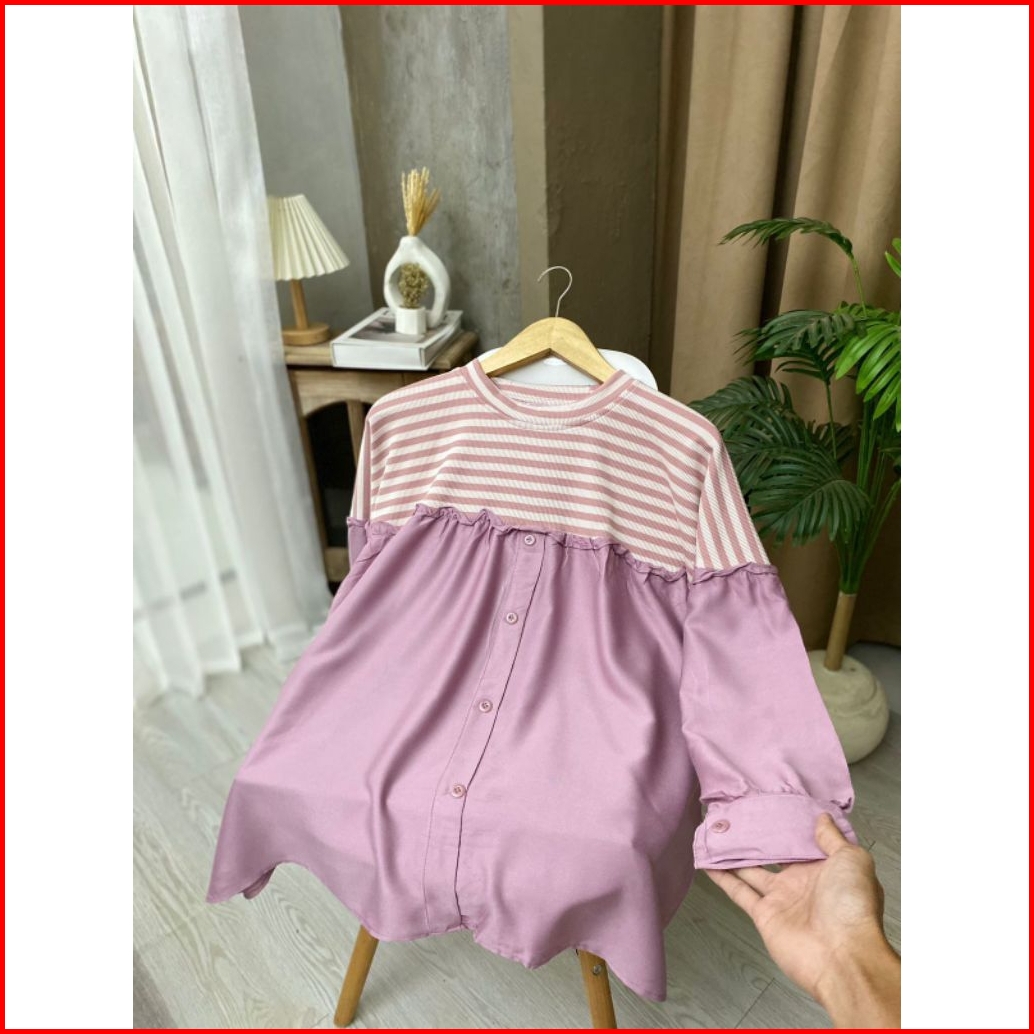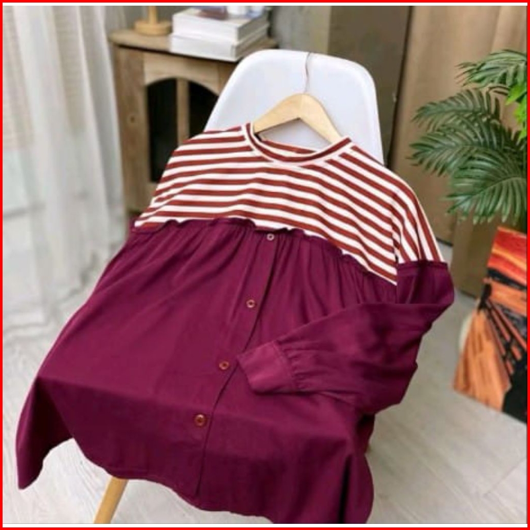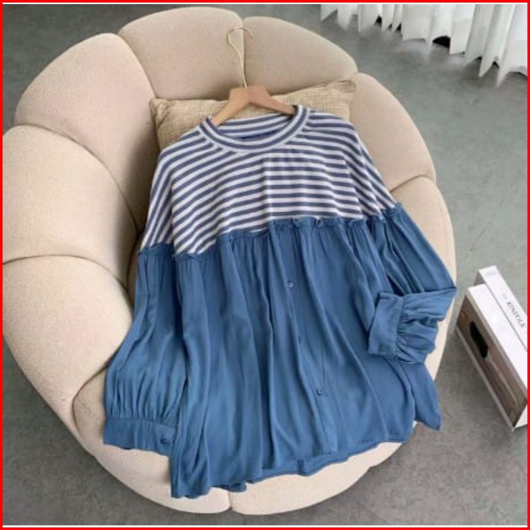 Belva Blouse Atasan Wanita Bahan Knit Mix Rayon Twill