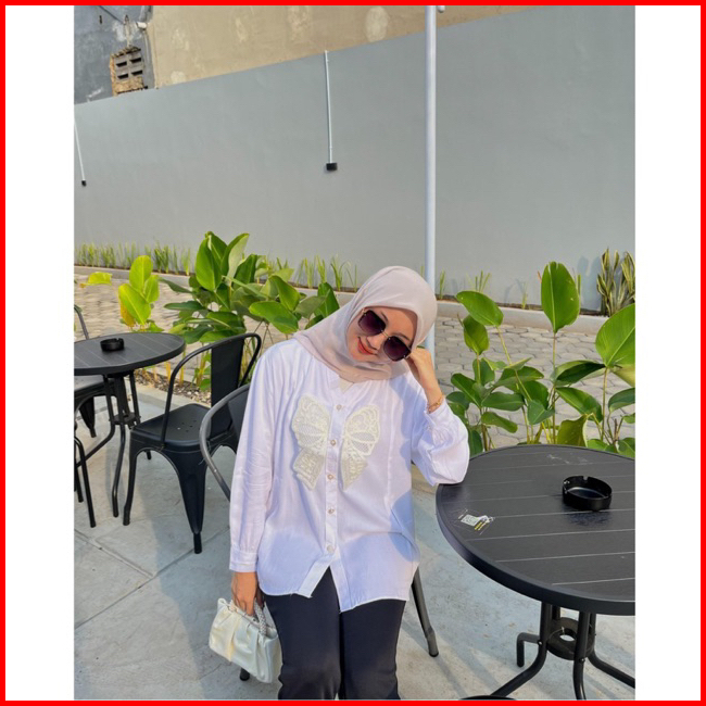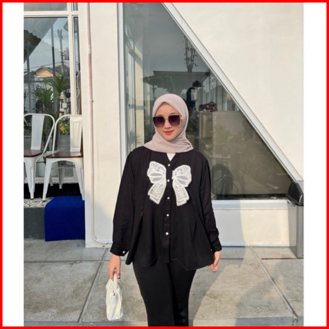 Mika Shirt - Kemeja Wanita Kombinasi Burket - Atasan Wanita Bahan Rayon Twill Premium