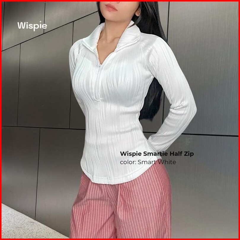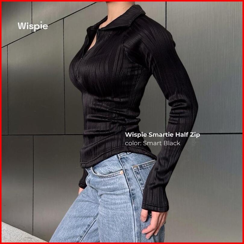 Wispie Smartie Half Zip Atasan Wanita Sleting Knit Bermotif Lengan Panjang Slim Fit Body