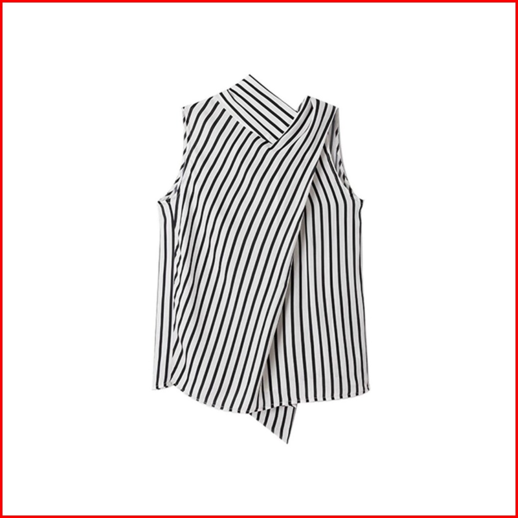Kemeja Pita Bergaris Hitam Dan Putih Leher Halter Prancis Untuk Wanita Musim Panas Desain Tidak Beraturan Atasan Tanpa L
