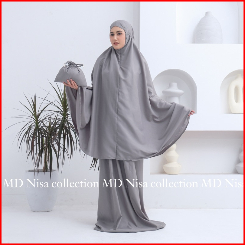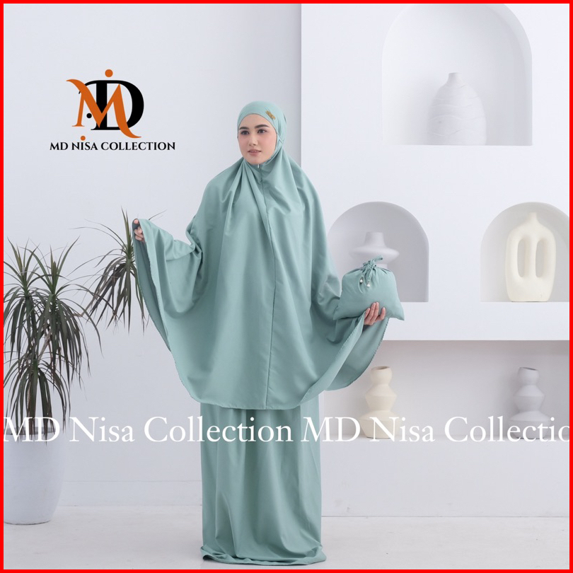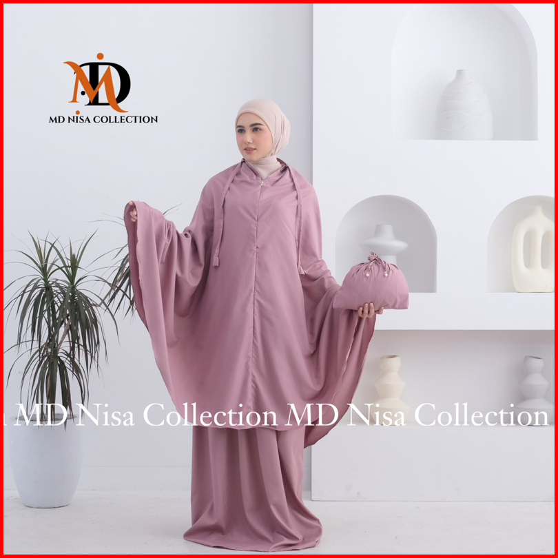 Md Nisa - Mukena Traveling Dewasa Mini Pouch 2in1 Resleting Alia Katun Import Premium