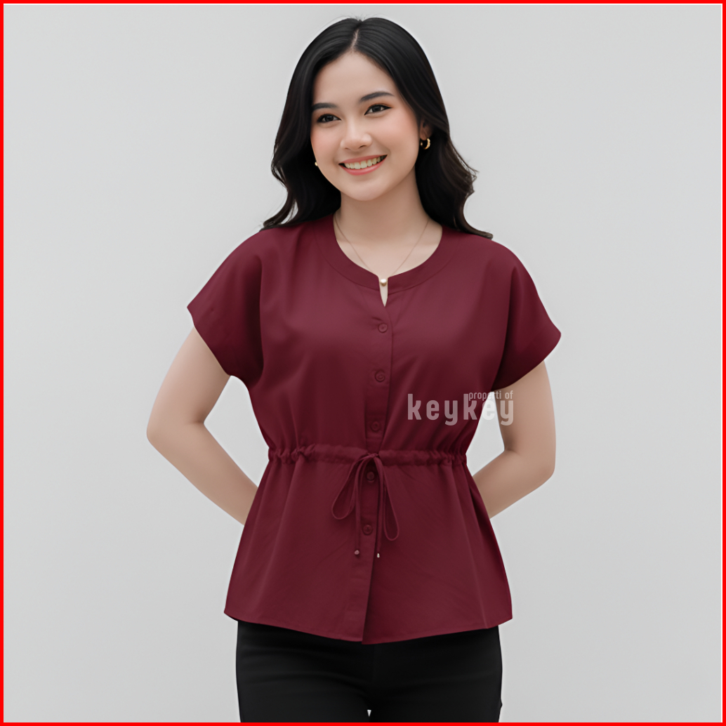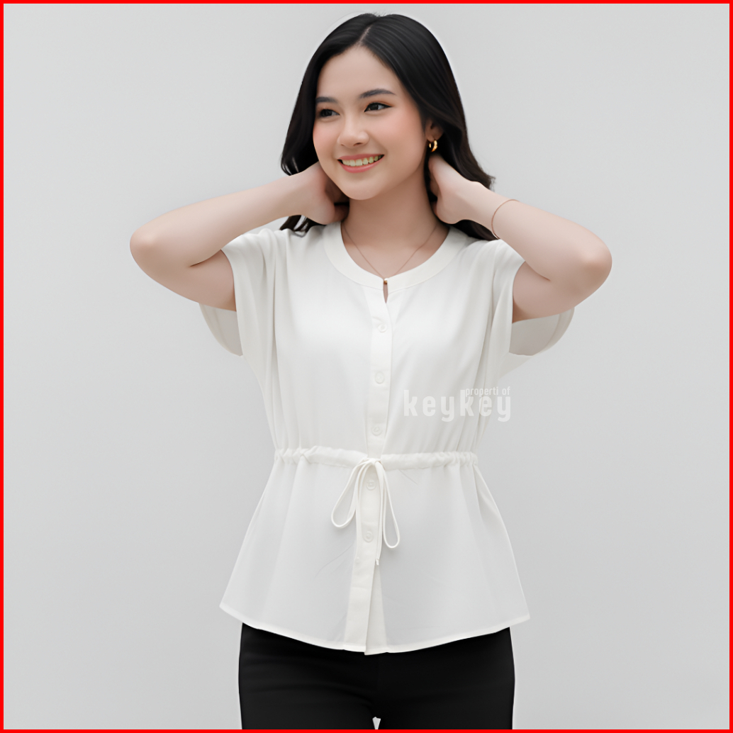 Key - 0650 Mika Top Size Xl Atasan Wanita Blouse Moscrepe Halus Tali Ikat Full Kancing