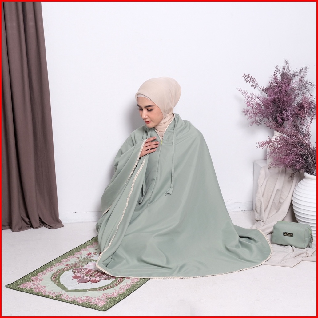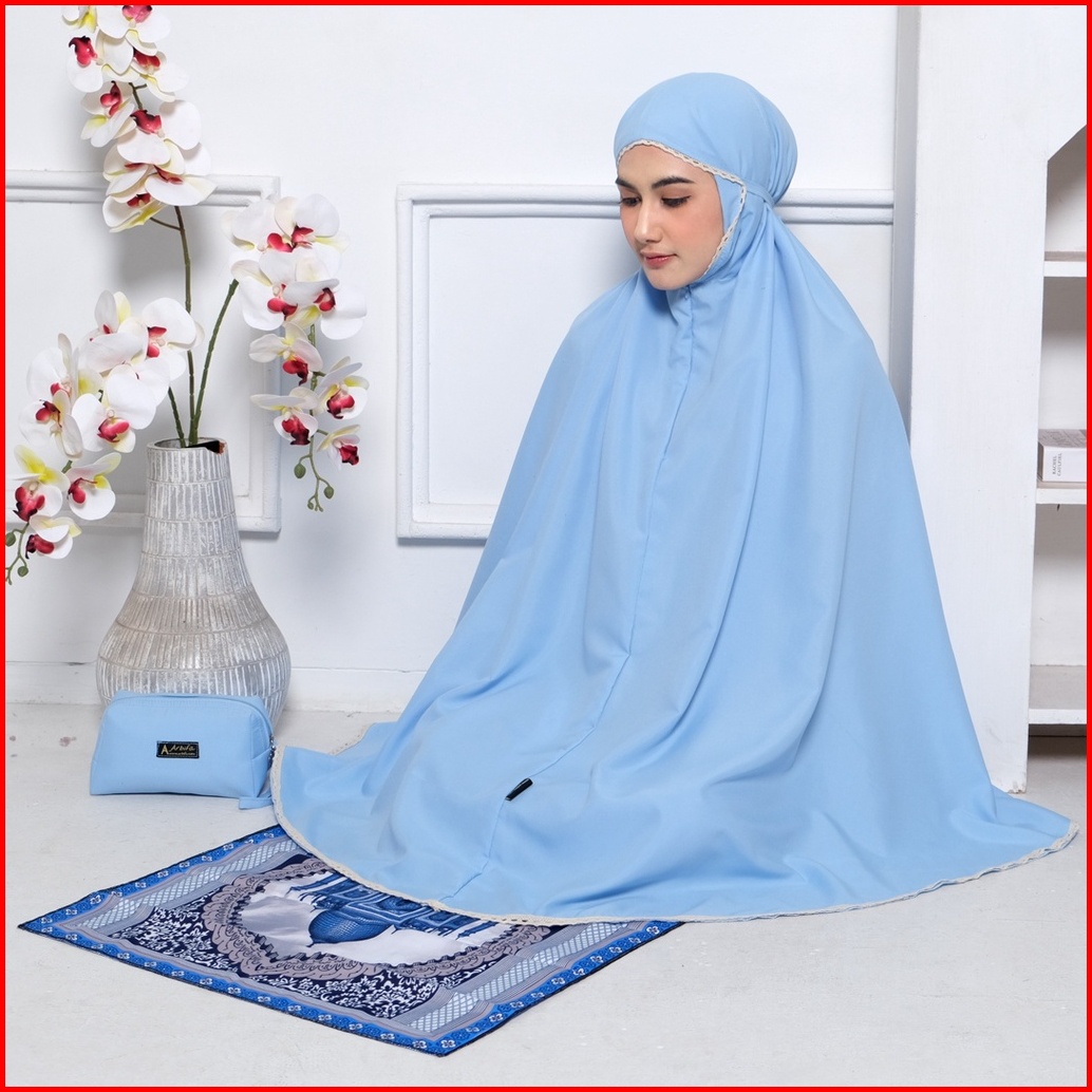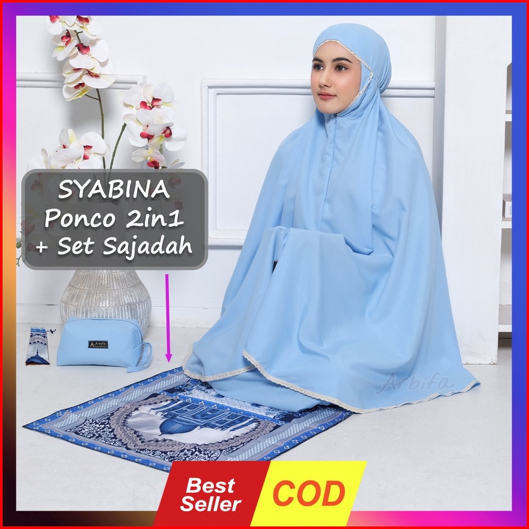 Arbifa Promo Full Set Mukena 2 In 1 Sajadah Syabina Katun Ponco Traveling Dewasa Resleting Dagu