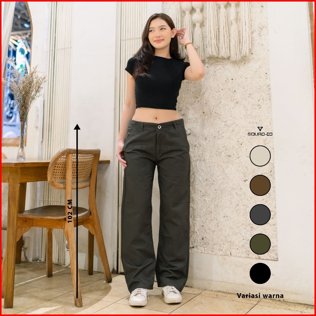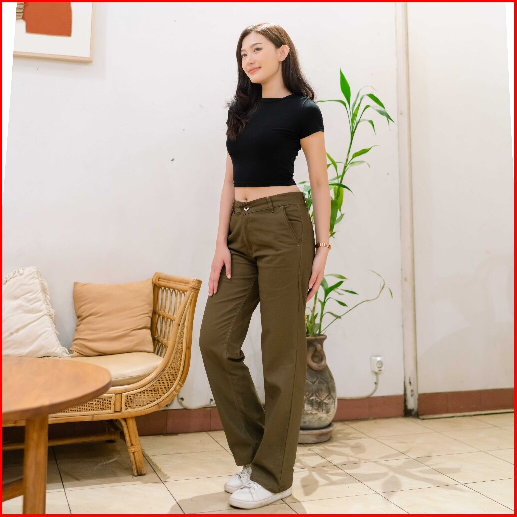 Celana Chino Wanita - Celana Katun Canvas Wanita - Chino Loose Pants Wanita Bahan Tebal Nonstrit