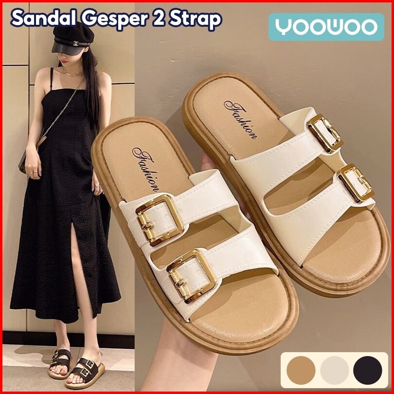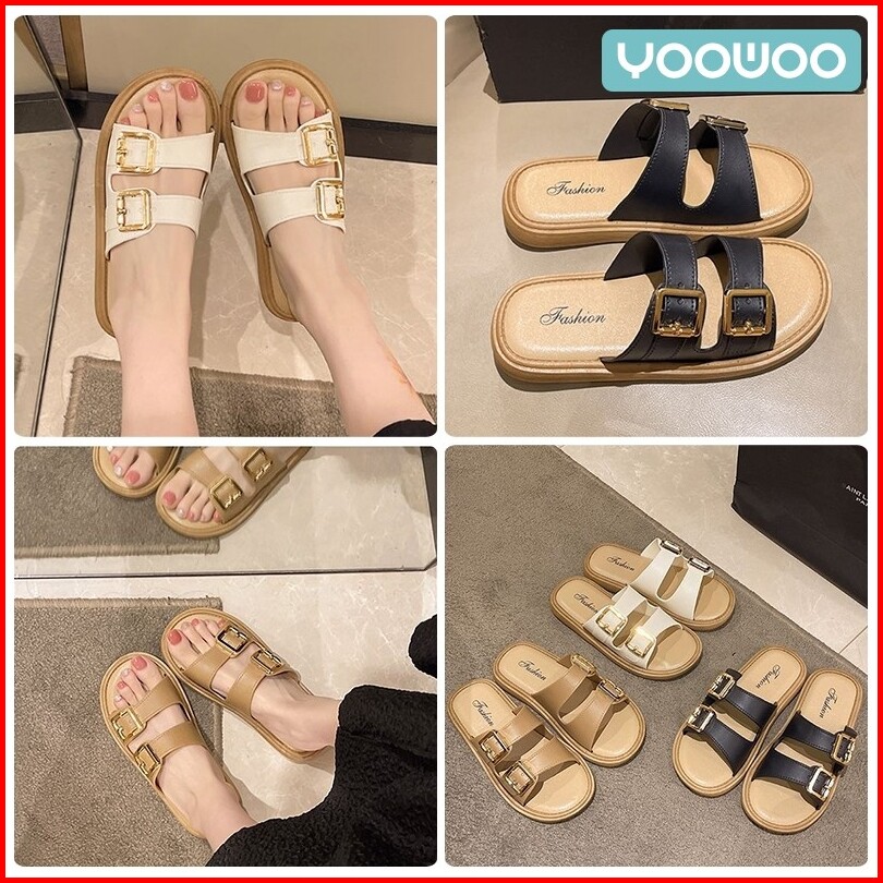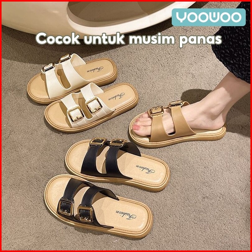 Yoowoo Sandal Wanita Kekinian Sandal Wanita Korean Style Sandal Selop Wanita Sandal Gesper Sabuk Sol Tebal Retro Sandal