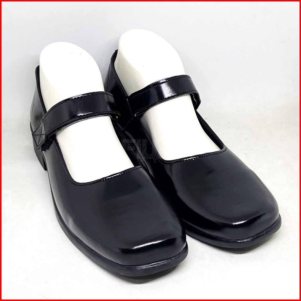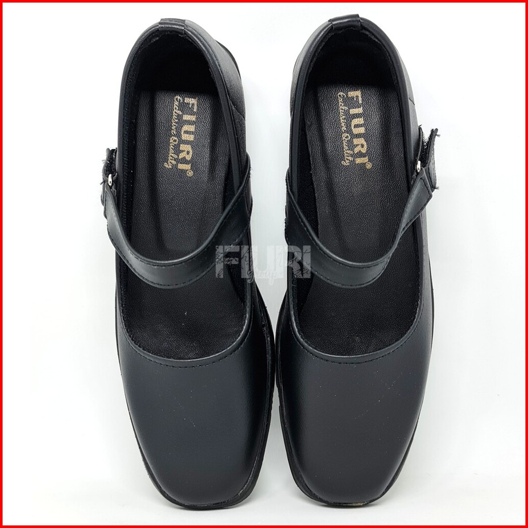 Fiuri - Sepatu Pantofel Slip On Hak 3cm Wanita Hitam 36-43 Bertali - Sepatu Sekolah Warna Hitam Putih Upacara Paskibra