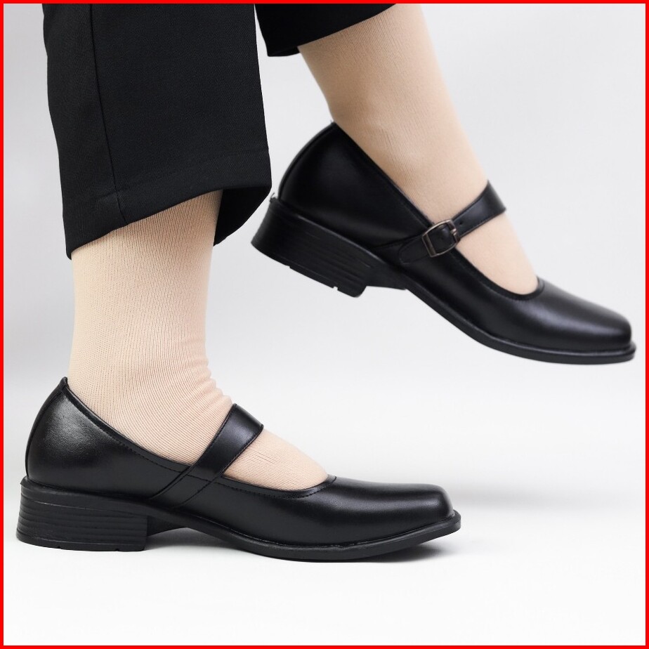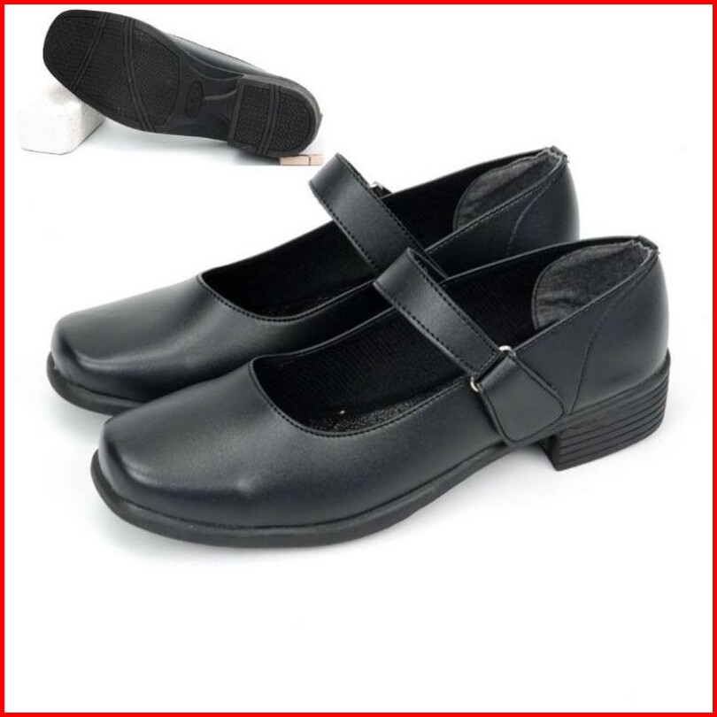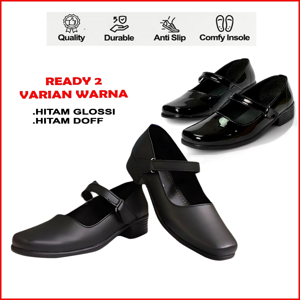 Promo Sepatu Terlaris Paskibra Wanita Hak 3 Cm Bahan Kulit Sintesis Hitam Sekolah Kantor