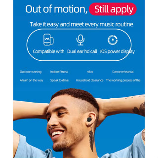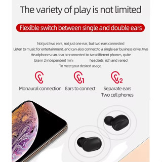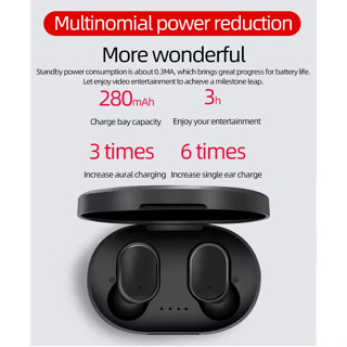 TWS Headset A6Lite Hitam Headphone Nirkabel Bluetooth 5.0 Earphone HD Full Bass Earbud Mini Olahraga untuk Ponsel Pintar