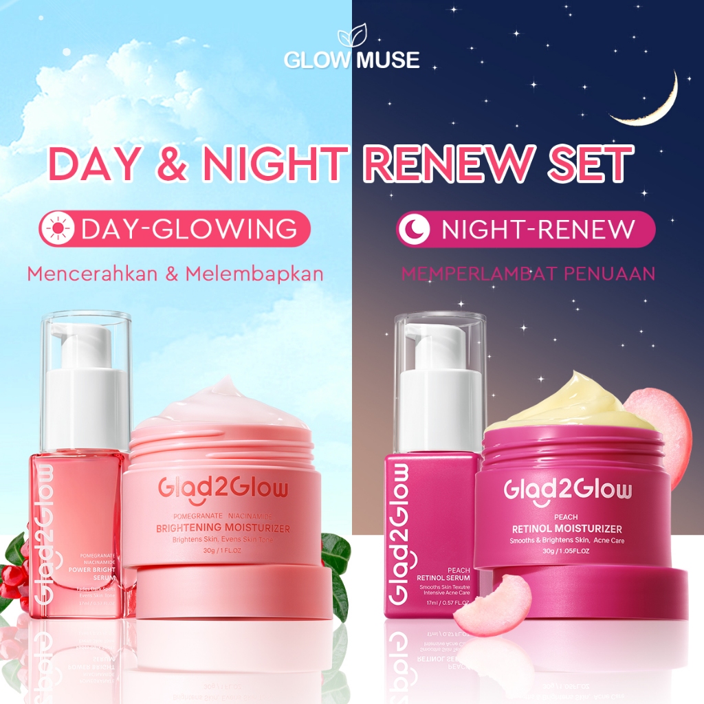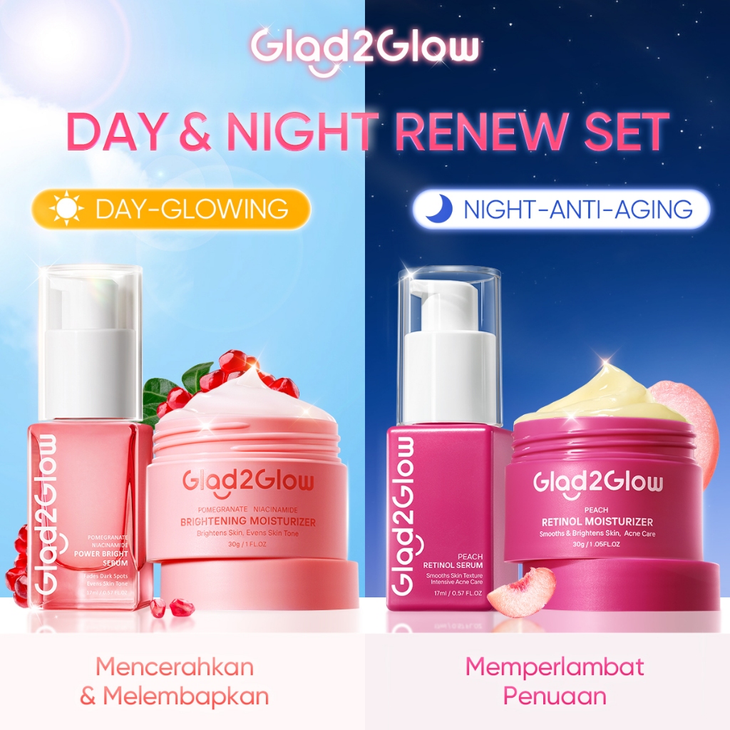 Glad2Glow Serum + Moisturizer Set – Glowing, Anti-Acne, Dark Spot | Ceramide Centella Blueberry