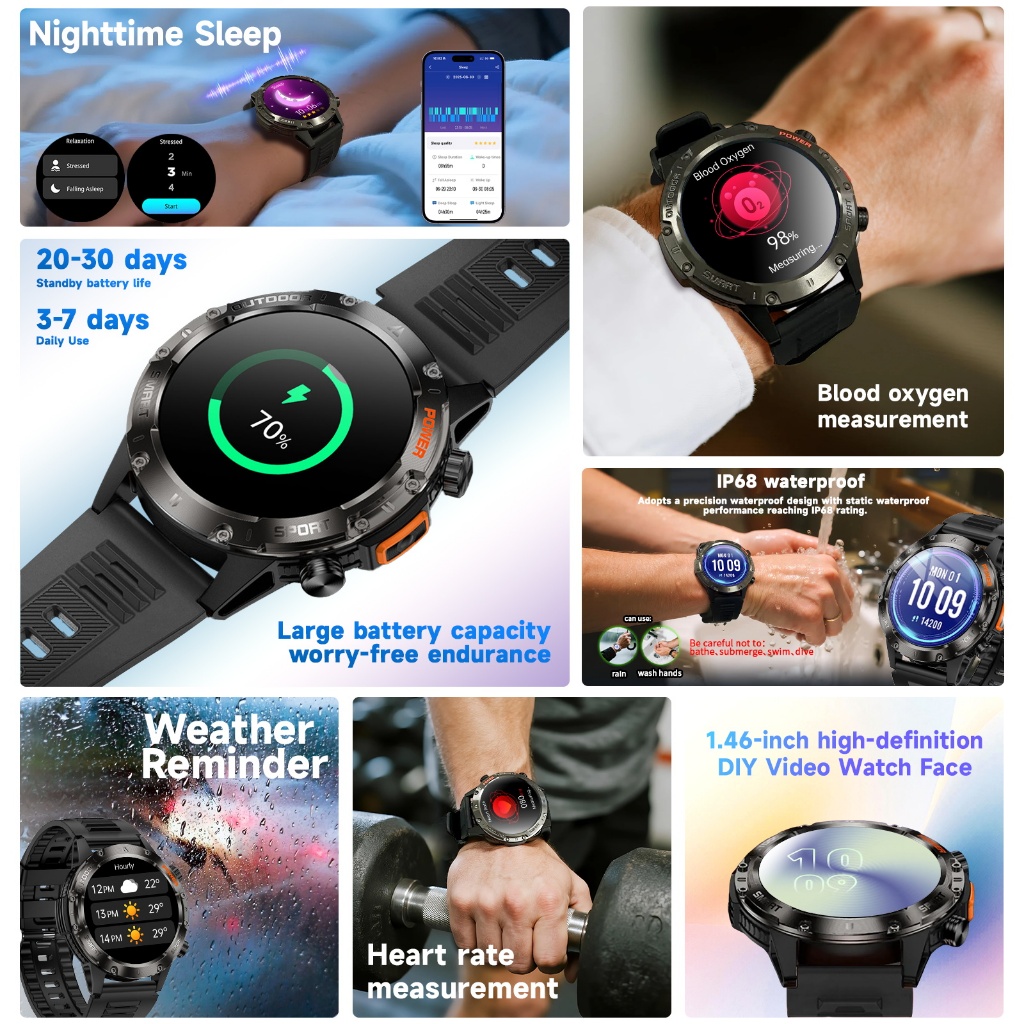 Smartwatch bozlun B76 Pria Wanita 1.46" Layar HD Dial 3D Dinamis Panggilan Bluetooth Senter LED 100+ e Olahraga
