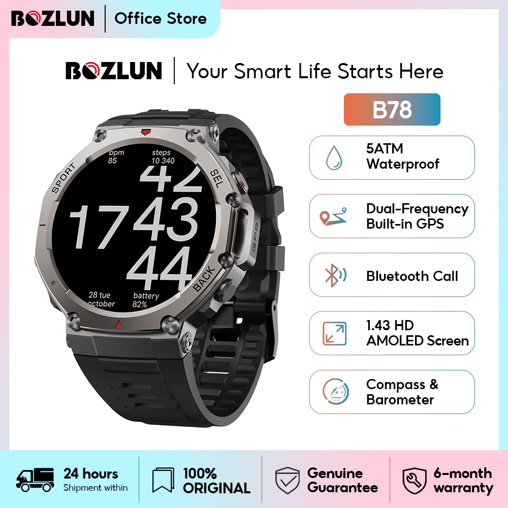 BOZLUN B78 Smartwatch 5ATM GPS AMOLED 100+ e Olahraga Kompas & Barometer Panggilan Bluetooth