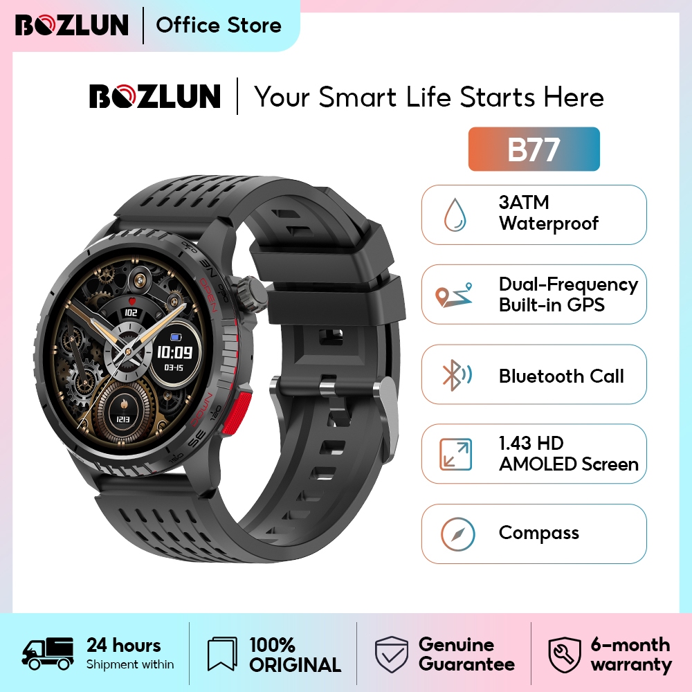 BOZLUN B77 Smartwatch GPS 3ATM Waterproof | Kompas | Strava Support | 1.43 Amoled |Compass | Bluetooth Call Altitude Air